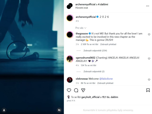 Pod teaserem zveřejněným na Instagramu kapely ARCH ENEMY se však Angela rozhodla přímo reagovat na rozruch mezi fanoušky. Do komentářů napsala: