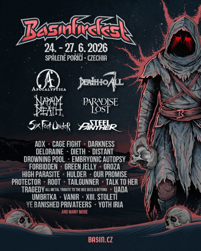 Tradičně i letos se Spálené Poříčí u Plzně od 24. do 27. června promění v epicentrum metalové zábavy. Basinfirefest 2026 slibuje explozivní mix stylů – od symfonického metalu přes gothic až po death, thrash a glam – a mezi headlinery se poprvé objeví americká kapela STEEL PANTHER, mistři zábavného a provokativního glam metalu.