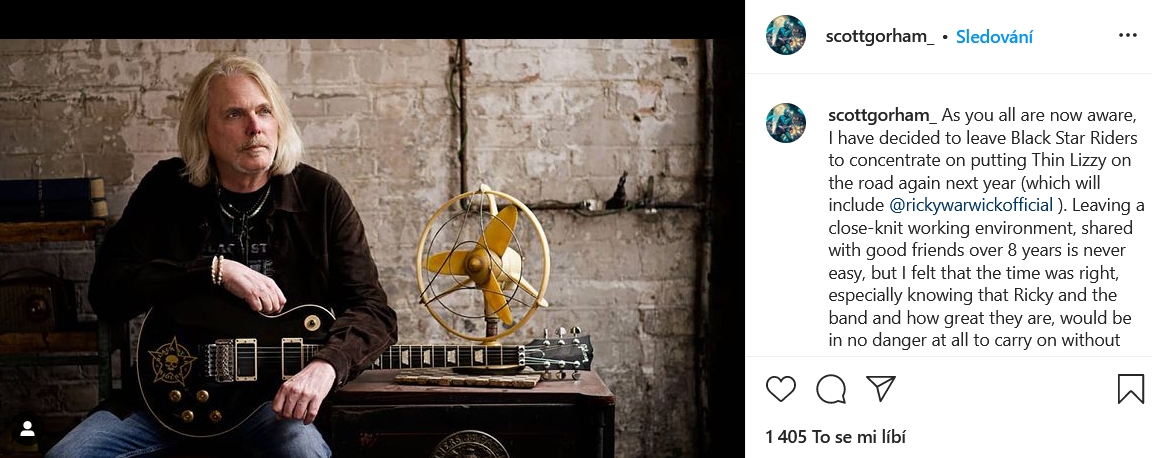 Scott Gorham pomohl BLACK STAR RIDERS uvést v život v roce 2012, a podílel se na všech dosavadních čtyřech albech souboru. Důvodem jeho odchodu byla nutnost koncentrace na jeho mateřské THIN LIZZY, kteří mají napřesrok mocně koncertovat.