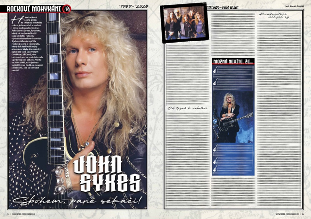 V třístránkovém článku se dočtete spoustu zajímavostí o Sykesově životě, tvorbě, důležitých spolupracích i kapelách. Rozhodně vás pobaví jeho reakce na vyhazov z WHITESNAKE: „Když mi John Kalodner do telefonu potvrdil, že jsem byl vyhozen z WHITESNAKE, rozzuřený jsem vletěl do studia, kde Coverdale točil vokály. Přísahám bohu, že přede mnou zdrhnul do auta, kde se zamknul. Jediné, na co se zmohl, bylo stažení okénka o čtvrt palce a blekotání: ‚To nebyla moje práce, to Geffen.‘ Samozřejmě že kurva lhal, a taky jsem mu to řekl. Šlápl na plyn a ujížděl pryč. Skočil jsem do corvetty své přítelkyně a začal ho pronásledovat. Vážně jsem přemýšlel o tom, že to do něj zezadu napálím. Naštěstí mě zdravý rozum přinutil zpomalit a nechat ho ujet.“ Pokud si chcete přečíst další historky ze života Johna Sykese, březnový Spark je vám k dispozici v každé dobré trafice nebo na Sparkshopu!