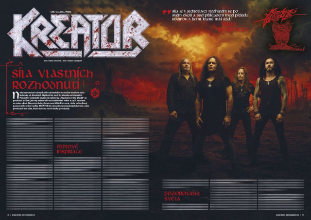 Frontman KREATOR Mille Petrozza se ve světě thrash metalu pohybuje už dlouhých čtyřicet let, a tak přesně ví, za čím si jde a čeho chce ve své tvorbě dosáhnout. Zarytý vegan s vlastními pevnými názory však nechce dnešní svět skrze hudbu své kapely kritizovat. Pouze nám sděluje svá pozorování a pošťuchuje nás k tomu, abychom jednali sami za sebe. V březnovém Sparku tak najdete rozhovor nejen o nejnovějším albu „Krushers of the World“, ale i o síle vlastních rozhodnutí.