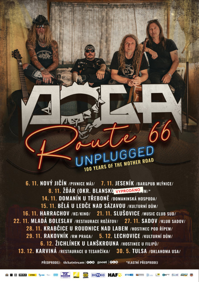 Amerika chystá velkolepé oslavy sta let od otevření nejlegendárnější silnice světa – Route 66. Česká rocková ikona DOGA bude toho součástí a „rouťácké“ unplugged tour odstartuje už v listopadu. Součástí bude i promítání vlastního dokumentu Route 66 & Rock’n’roll, který kapela natáčela na matce všech silnic v roce 2023. Vrcholem bude jedinečný koncert v Tulse v Oklahomě.