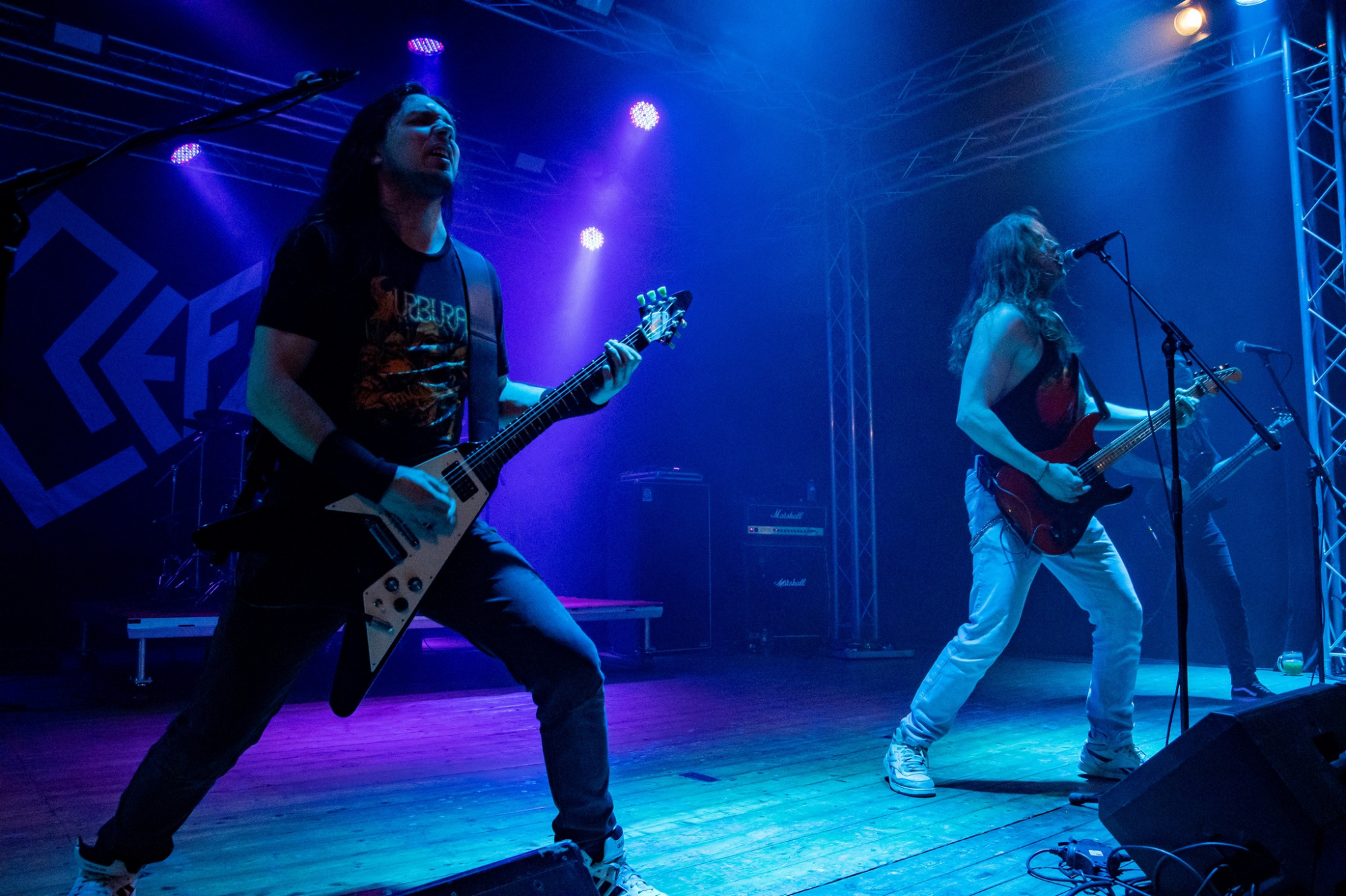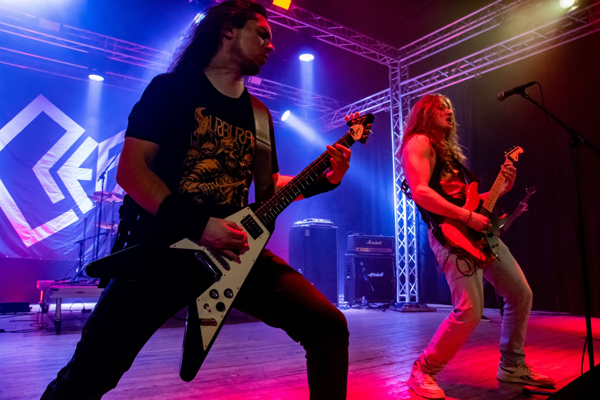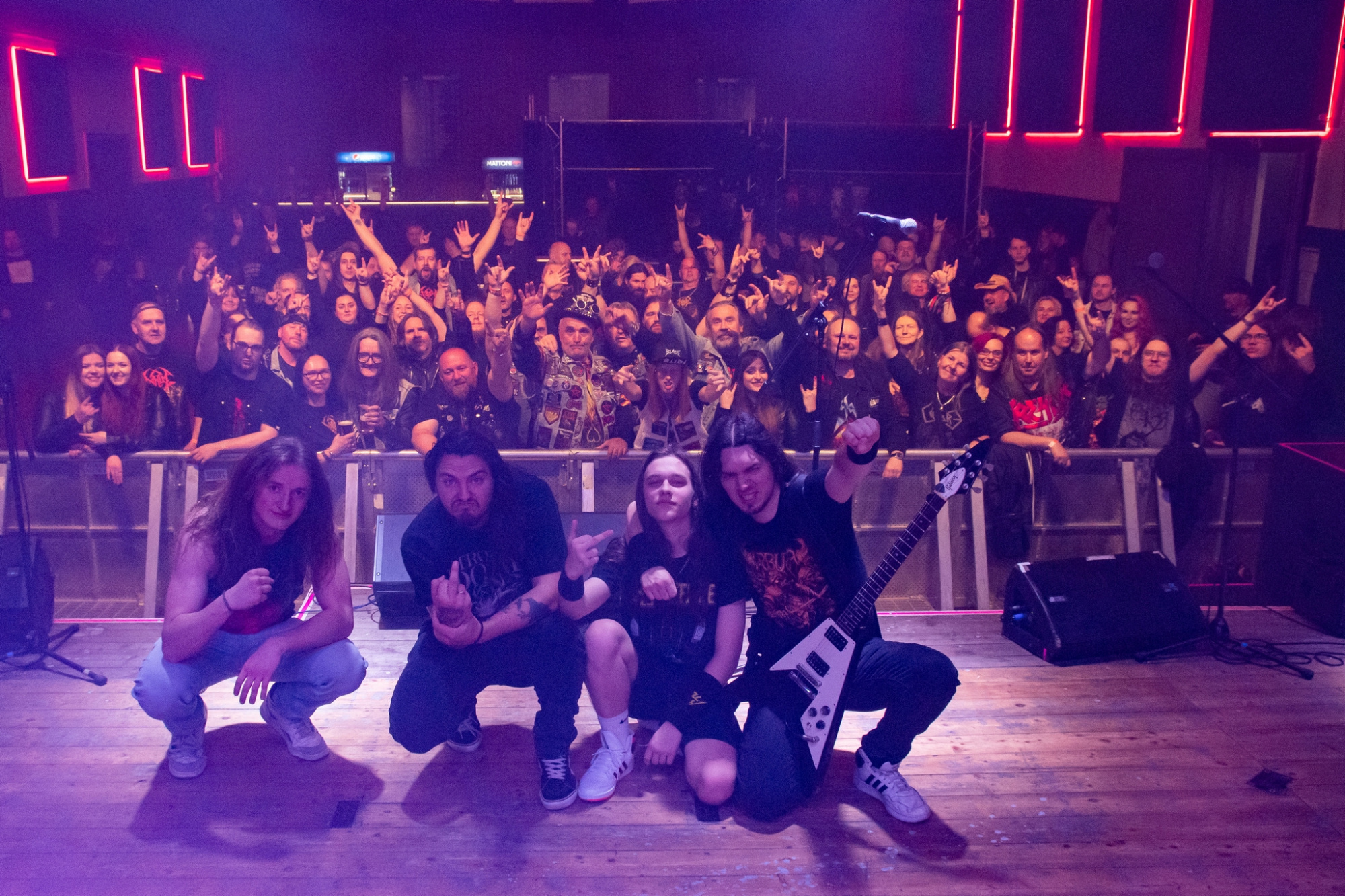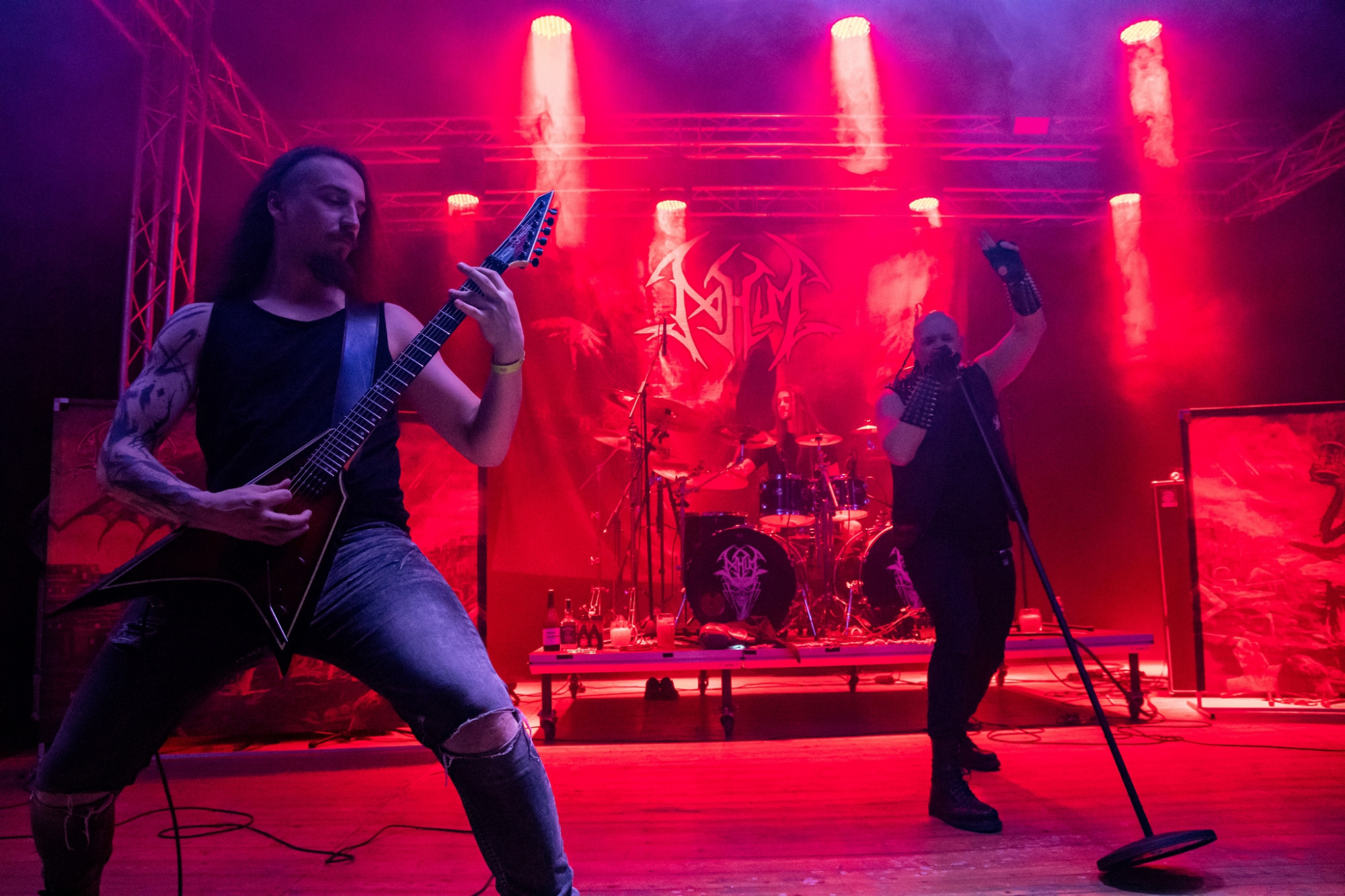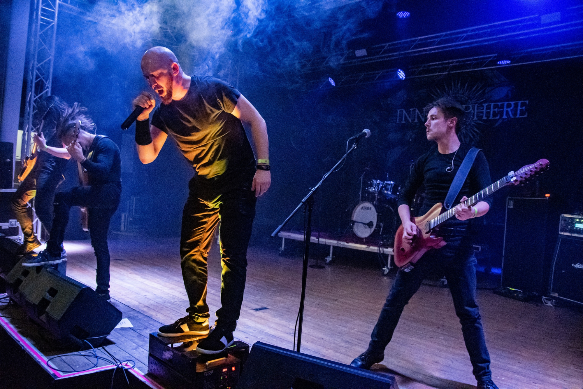 Večer už poměrně brzy otevřel trojlístek kapel MATRONES, MARNO a MELANCHOLY PESSIMISM, přičemž poslední ze jmenovaných vystoupení bylo notně prokládáno zdařilým stand-upem frontmana. Další z gratulantů, kteří vystoupili a zároveň jsou aktuálně na rozsáhlé koncertní šňůře s oslavenci večera, byli plzeňští INNERSPHERE, kteří vnesli vážnost a notně přitvrdili. Kapela ostravskému publiku představila svou obnovenou sestavu, která obstála na výbornou.