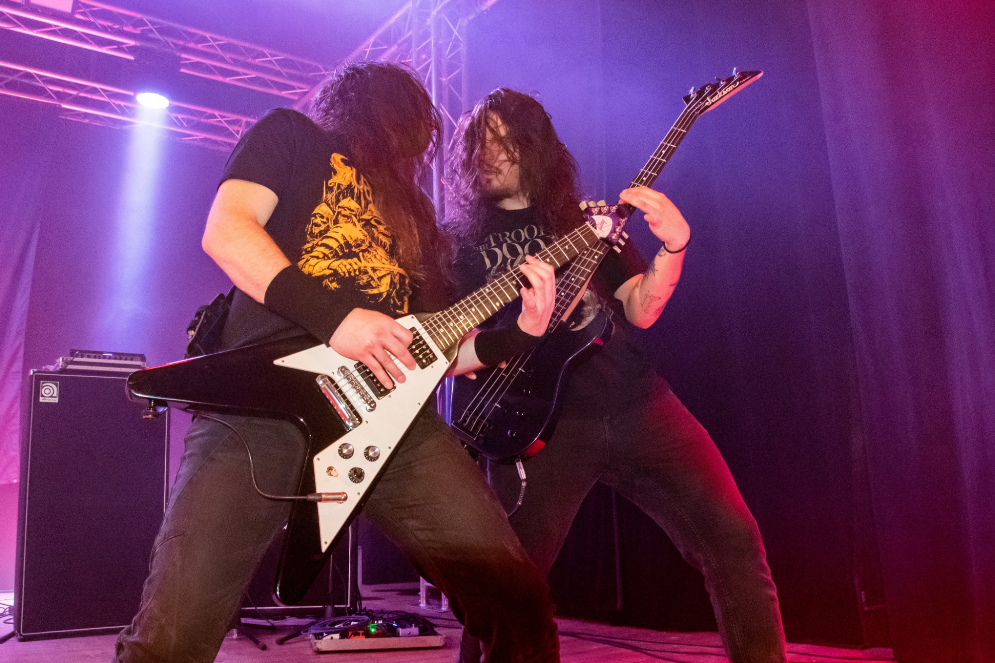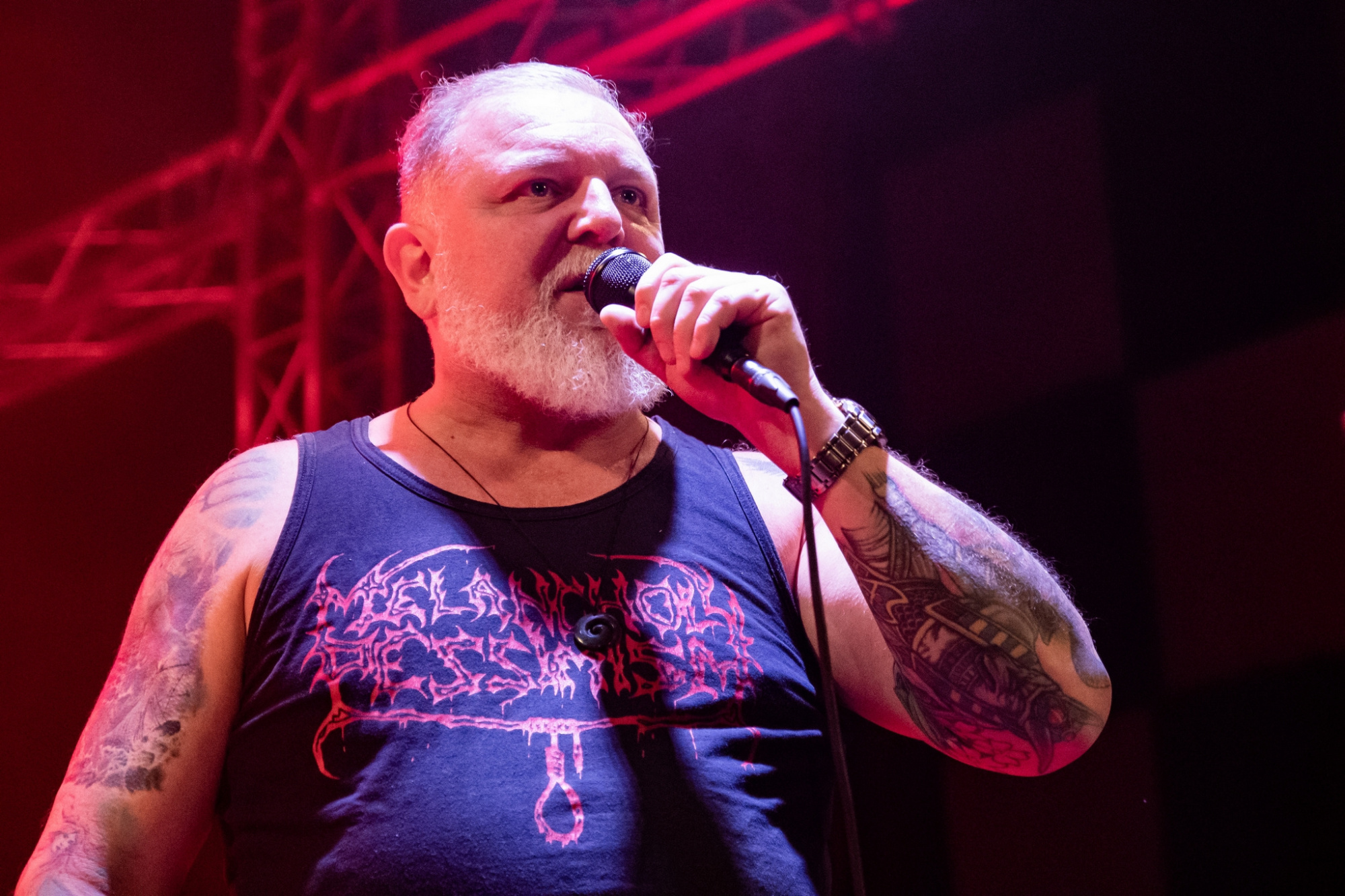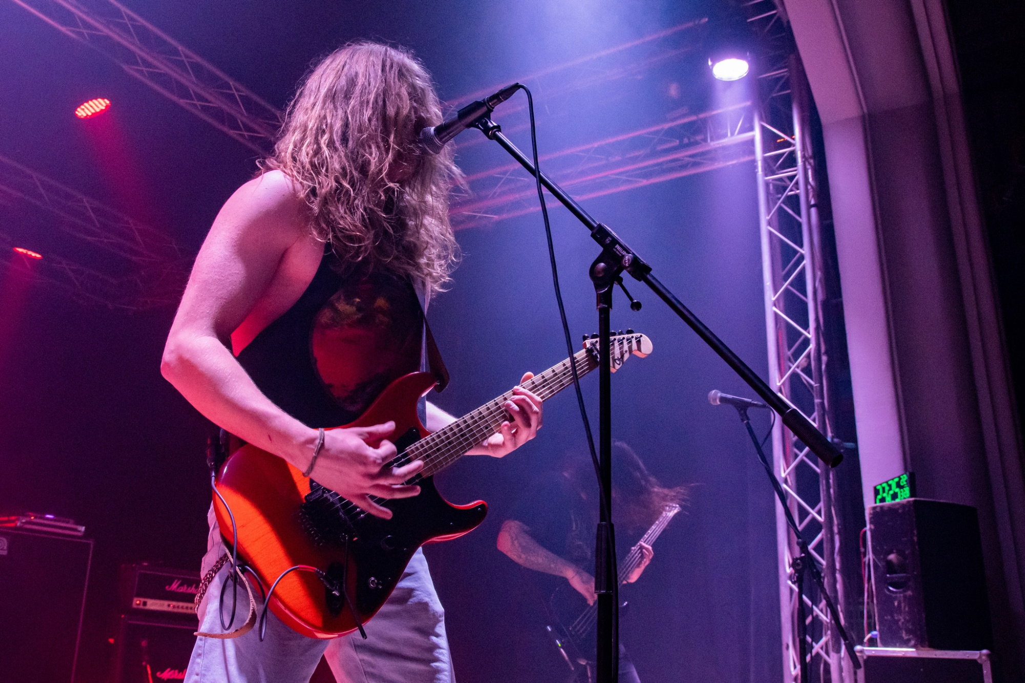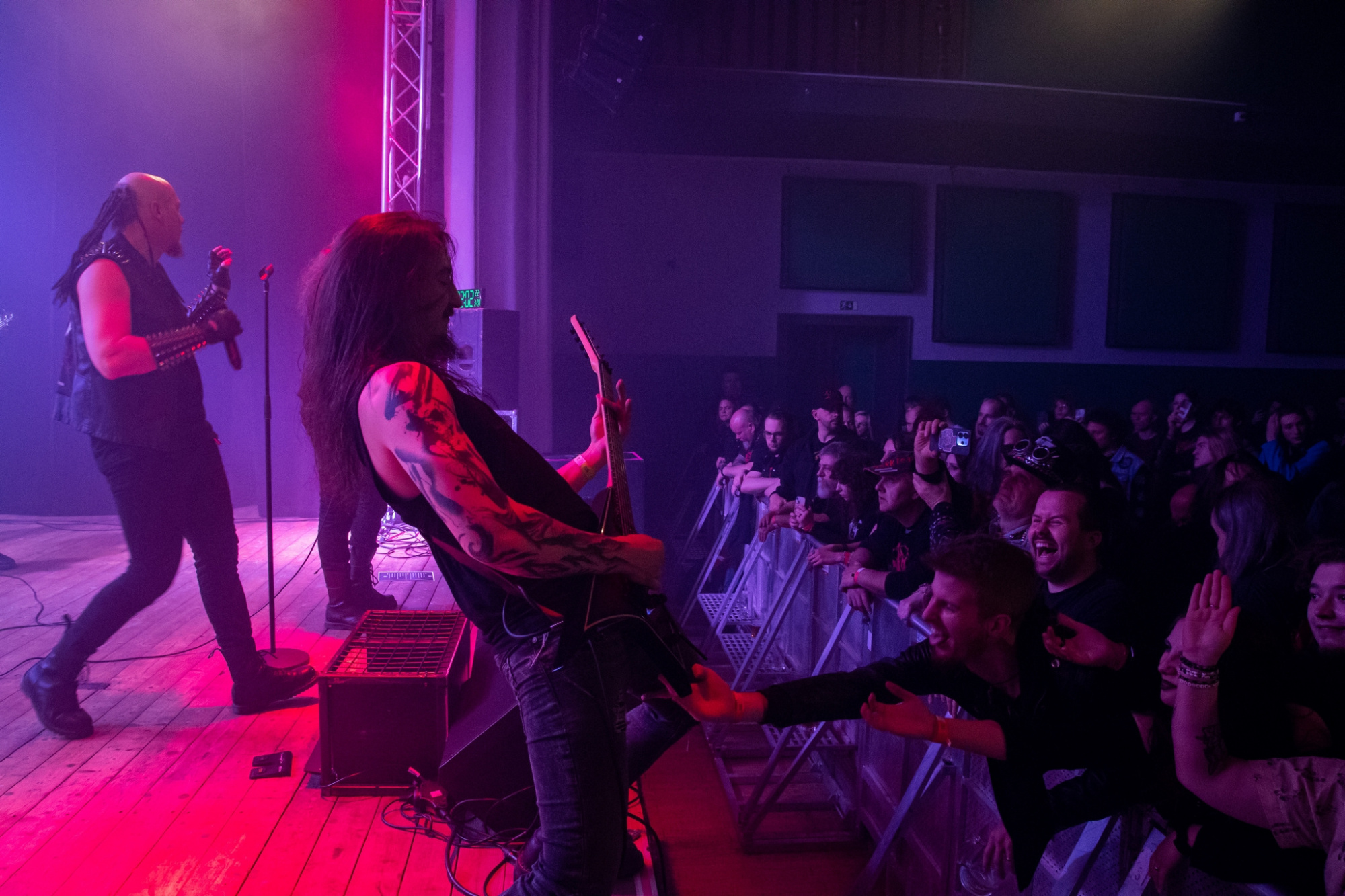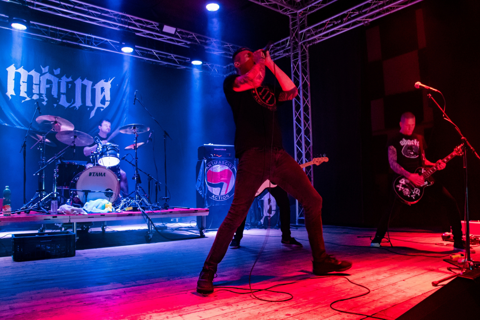 Večer už poměrně brzy otevřel trojlístek kapel MATRONES, MARNO a MELANCHOLY PESSIMISM, přičemž poslední ze jmenovaných vystoupení bylo notně prokládáno zdařilým stand-upem frontmana. Další z gratulantů, kteří vystoupili a zároveň jsou aktuálně na rozsáhlé koncertní šňůře s oslavenci večera, byli plzeňští INNERSPHERE, kteří vnesli vážnost a notně přitvrdili. Kapela ostravskému publiku představila svou obnovenou sestavu, která obstála na výbornou.