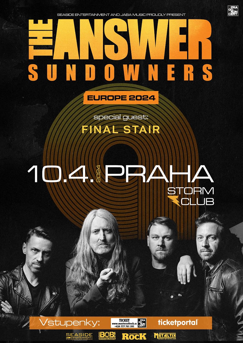 Velký návrat s novým albem pro vás chystá Irská legendární hardrocková banda THE ANSWER. Na tento okamžik čekali dlouhých 7 let a nyní jsou připraveni tento svůj plán uskutečnit. Nové album „Sundowners“ vyjde 17. března 2024 a turné po Evropě odstartuje v dubnu. Už 10. dubna 2024 dorazí tato vynikající kapela také k nám do Prahy, do klubu Storm!