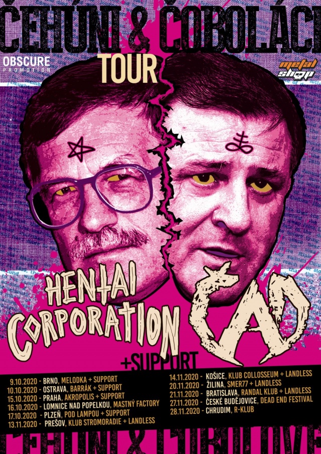 Skutečně, tohle turné bude uragán! Bratia HENTAI CORPORATION v myšlence ztřeštěných projektů Mikea Pattona jako Mr. Bungle, kde volně přechází mezi žánry a z naprosto krejzy polohy nasadí vážnou masku, budou headliner českých koncertů, kdežto bratři ČAD, kteří roky skládání vytříbili svůj projev do jednoduchých, maximálně úderných písní, jež každé pódium rozezvoní jak čertovu kovadlinu, budou zas šéfovat těm slovenským.