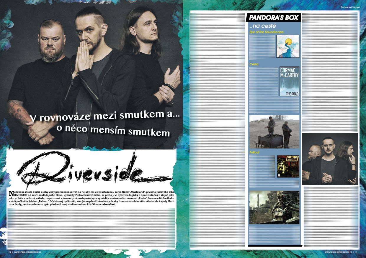 Nečekaný odchod zakládajícího člena a kytaristy Piotra Grudzińského, nasměroval RIVERSIDE k hledání nových hudebních i filozofických cest. Polské trio se na novém albu „Wasteland“ inspirovalo například knihou Cormaca McCarthyho „Cesta“, či počítačovou sérií „Fallout“.