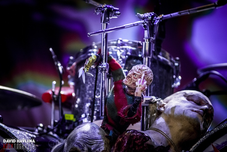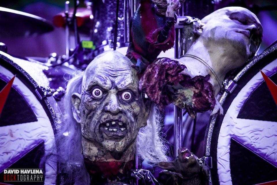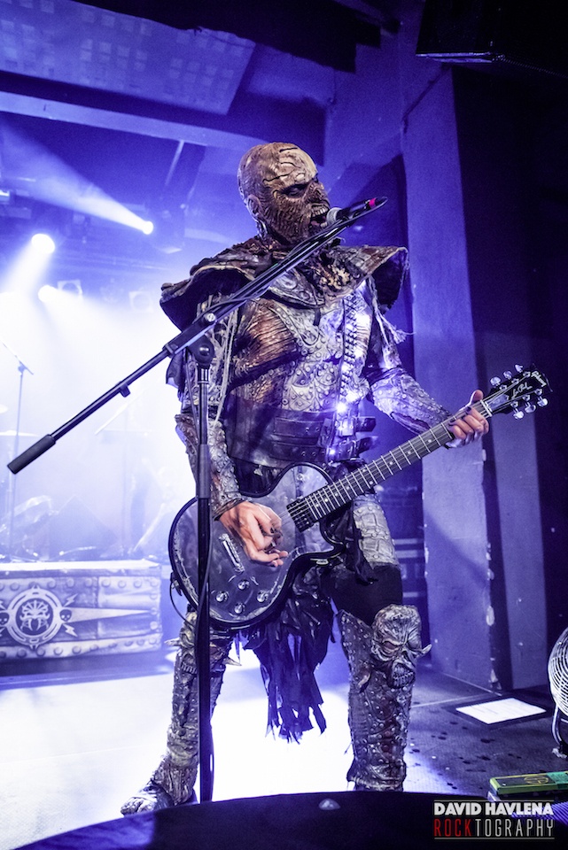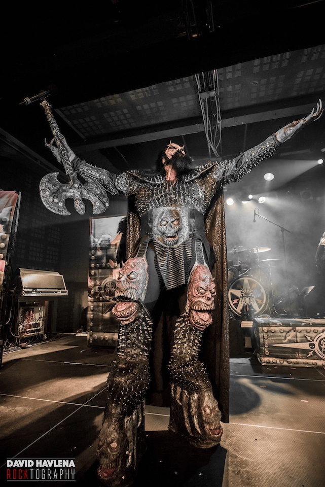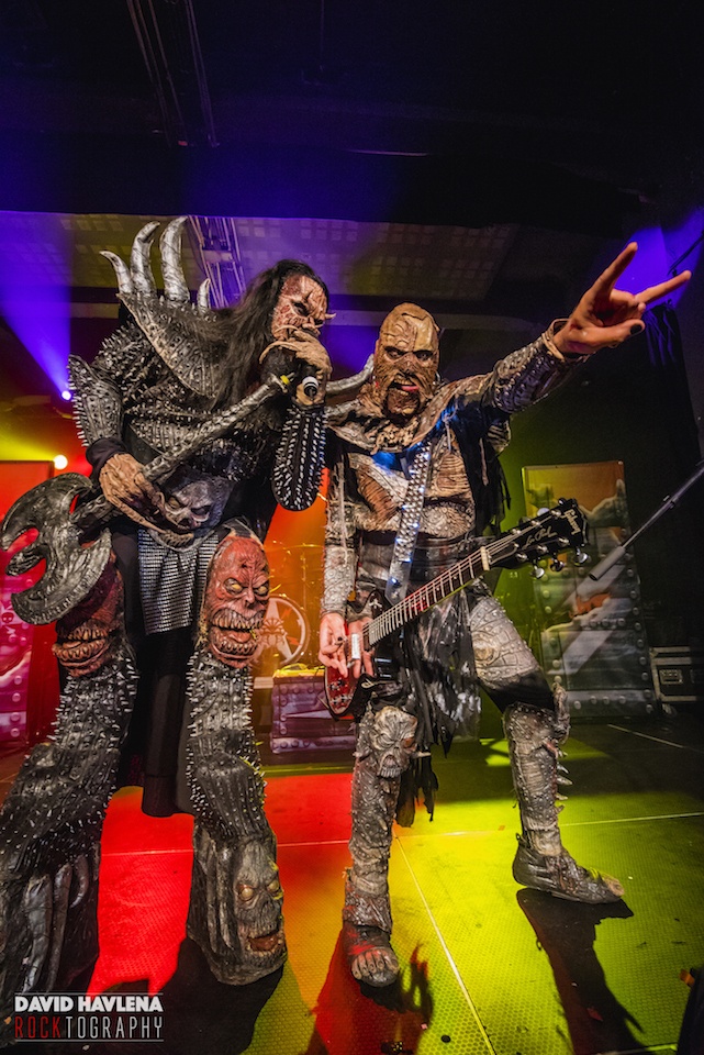 Aktuální show přesně kopíruje aktuální produkci strašáků. Drží si vysoký standard, i když každý už dávno ví, že velkých překvapení se nedočká. Takže ano, na pódiu nechyběly rekvizity, mrtvoly, pily, vnitřnosti... Obdivuji, že toliko ohranou show přehrávají neustále s vůlí profesionálů. Je to hra, kterou musí člověk hrát podle jejich pravidel. Jinak by tuhle latexovou šarádu zřejmě nikdo nepochopil. Naštěstí fanoušci mají rádi jejich masky. A mají rádi i jejich hudbu. Při hitech "Hard Rock Hallelujah", "Blood Red Sandman" nebo "Would You Love a Monsterman" se sálem nesl hromový zpěv celého davu. Dobře fungují i novinky. Aktuální titulní "Scare Force One" si odbyla úlohu prvního přídavku, role otvíráku patřila svižné "Nailed by the Hammer of Frankenstein". Došlo i na novinkové teatrální mezihry. Klavírní "Hella's Kitchen" s působivým dětským smíchem přešla na pekelné klauny "Hell Sent in the Clowns". Naopak úderná klasika "Devil Is a Loser" uzavřela základní hrací dobu dobře naloženého kvintetu. Na to, jak jsou LORDI v maskách neohrabaní, měla show rychlý a příjemný spád. Snad jen ty sprosťárny, co se Mr. Lordi naučil česky vyslovovat, si mohl odpustit. Některé vulgarity zkrátka nebyly na místě. Resp. jejich opakování pozbývalo účinku. To podstatné - kapela šlape jako hodinky, koncerty nenudí a kdo byl poprvé, musel odcházet s nadšením. A že vás nebylo málo. David Havlena fotil v Praze.