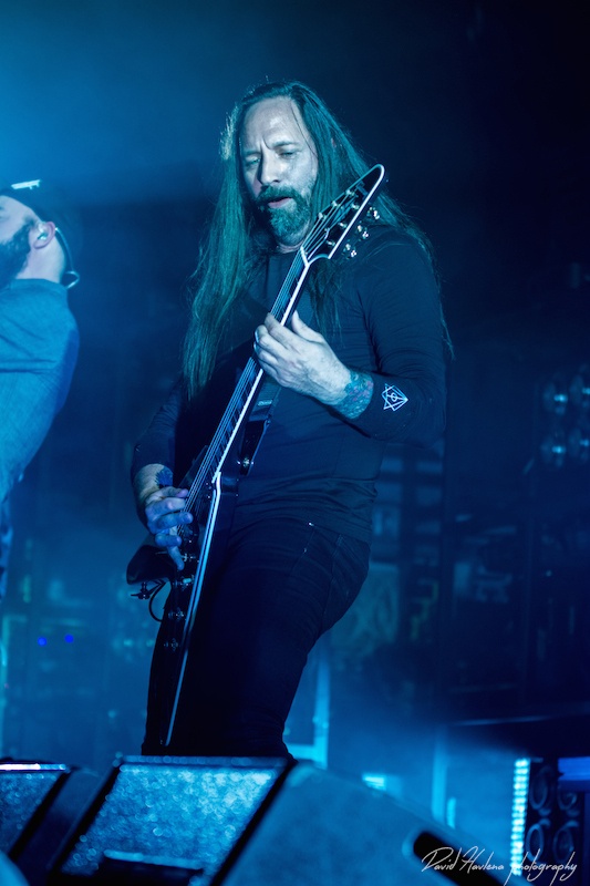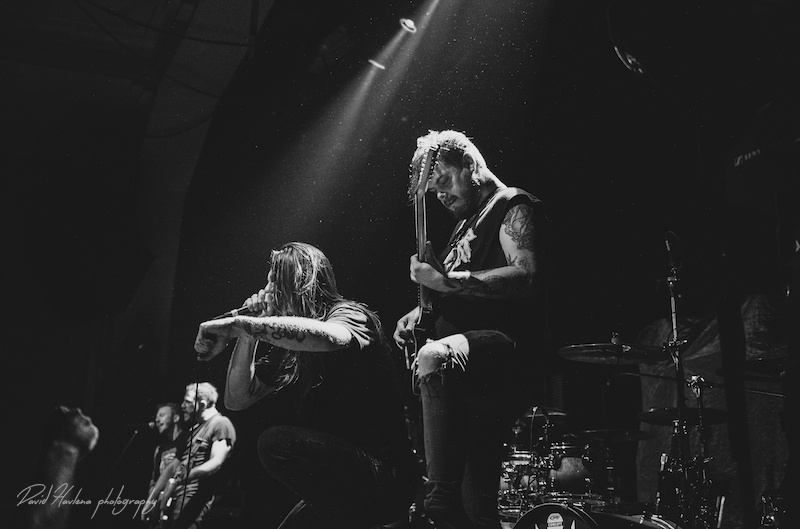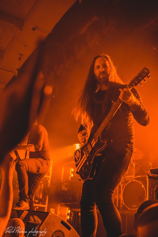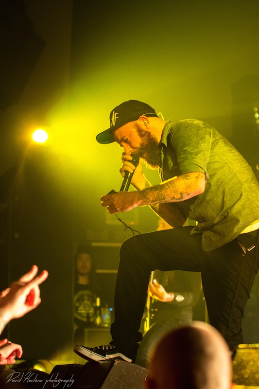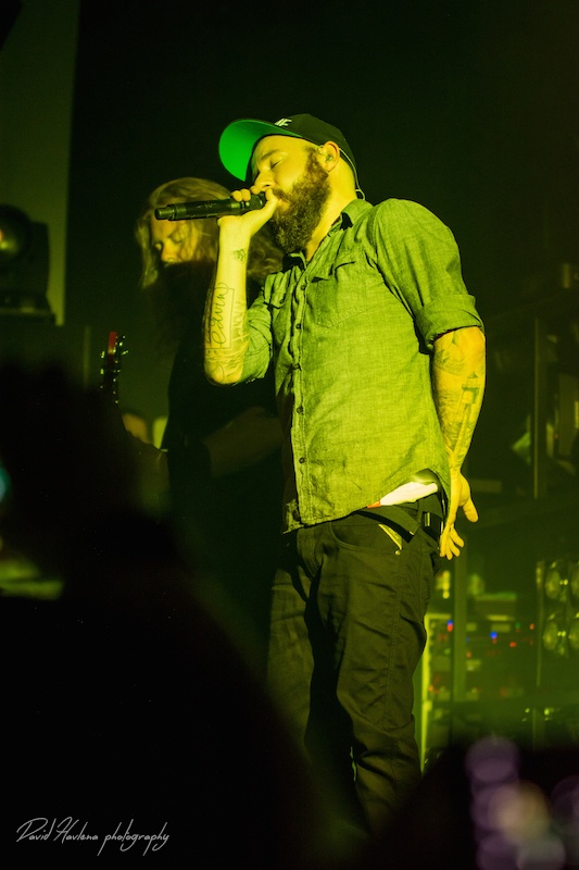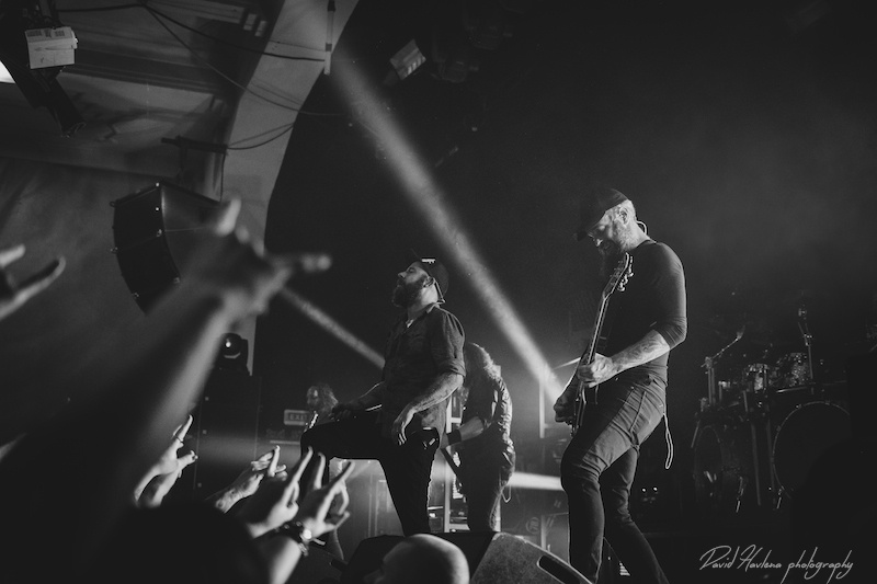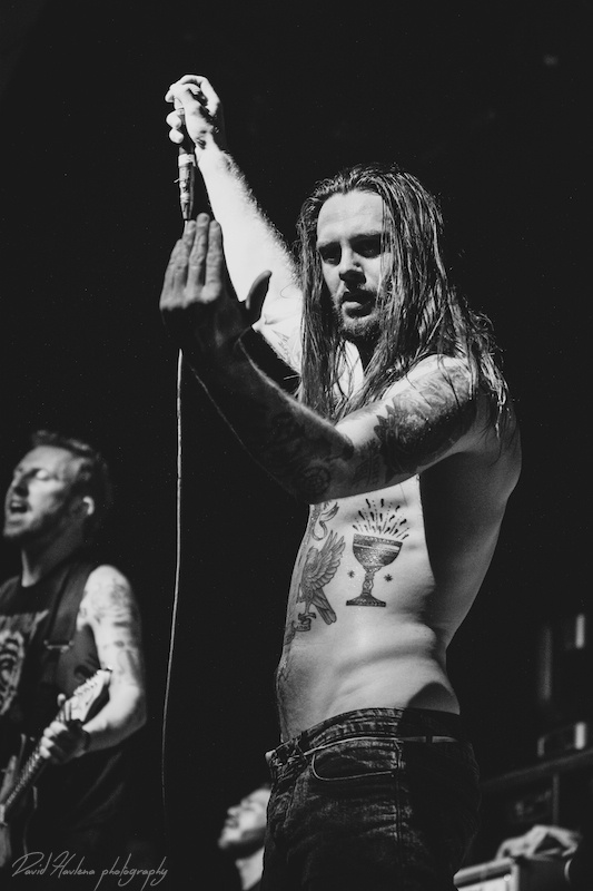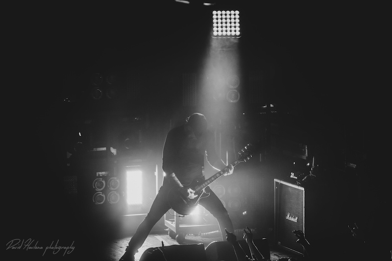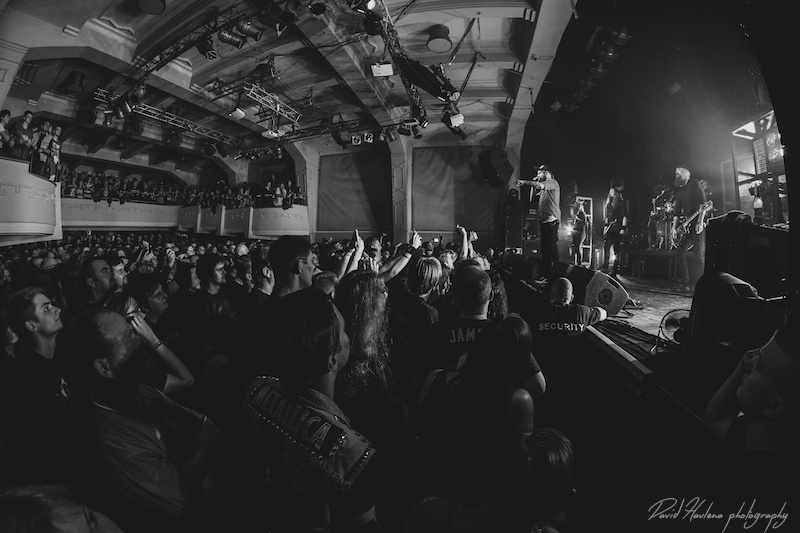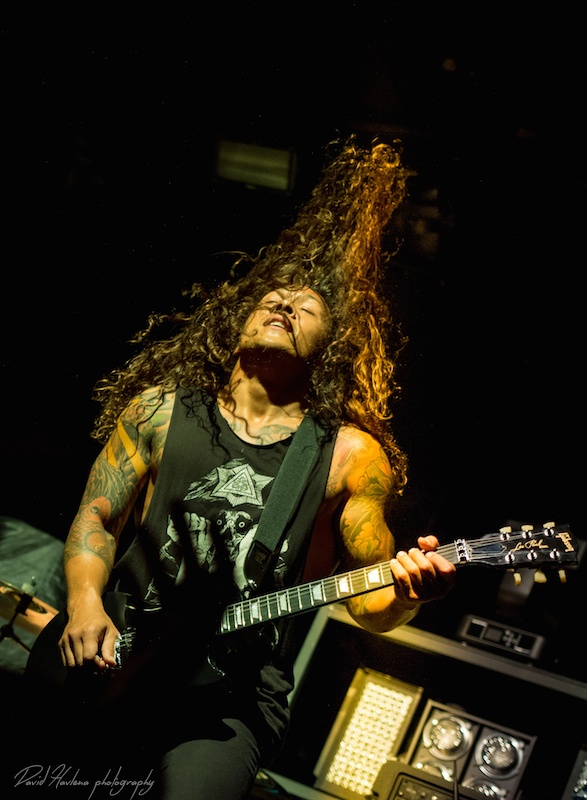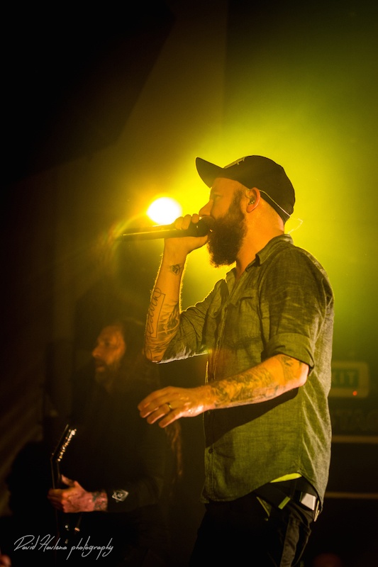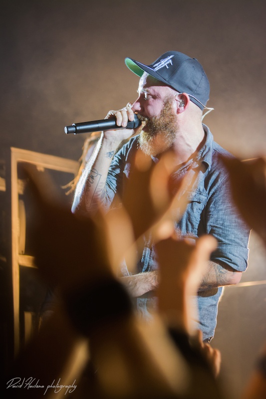 Třetí zastávka na turné a potřetí vyprodáno. Podobně jako v Krakově nebo Budapešti ani do pražského Roxy by se už víc lidí nevešlo. Kontroverzní albová novinka „Siren Charms“ sice svádí mezi (internetovými) fanoušky boj o přežití, nicméně návštěvnost koncertů to evidentně nepoznamenalo. Naopak! Zájem o kapelu roste. Předskakovali ambiciózní hardcoristé WHILE SHE SLEEPS a nástupnická formace AS I LAY DYING říkající si WOVENWAR. „Plameňáci“ tak měli v zádech hodně slušnou konkurenci, která se rvala snad o každého hroziče v sále. Prvně jmenovaní do toho šli po hlavně. Zvuk se sice mydlil jak hadr ve ždímačce, ale to bylo buřt. Angláni urvali se své půlhodinky maximum. Několikrát se skákalo do publika, jeden fanoušek při pokusu dostat se na pódium ukázal nechtěně zadek a všechen ten bordel skončil stejně rychle, jako začal. WOVENWAR přinesli přeci jen víc melodií. Hlavně ve zpěvu Shanea Blaye. Hlasově ale nebyl ve formě. Vypjaté rejstříky neutáhl a zpěvné refrény se mnohdy měnily v uječený řev. Hudebně ale ok. Kapela válela. Slušně si to dával hlavně kytarista Nick Hipa. Postavu ala Rambo a vlnité kadeře v kombinaci s kytarovými sóly zkrátka nepřehlédnete. IN FLAMES nemají lehkou pozici. Metalové magazíny jejich novinku ve Švédsku rozcupovaly na kusy, letití fandové z ní nejsou dvakrát u vytržení a kapela se za svou kariéru asi nejvíce vzdálila od svého tradičního zvuku. Pochybnosti stranou. Naživo zní pecky ze „Siren Charms“ ohromně (jsem toho názoru, že to tak je ale i na desce). Úvodní „In Plain View“ byla ještě takovým zahřívacím kolem, ovšem následující novinková šleha „Everything’s Gone“ rozcupovala, co mohla a rozjel se večírek s velkým V. Při klasice „Trigger“ šla teplota v sále prudce nahoru, v podání „When the Dead Ships Dwell“ se bravurně odskočilo k předchozí řadovce „Sounds of the Playground Fading“ a prvním překvapením večera byla další novinka a sice „Paralyzed“. Fridén při ní vyzval k rytmickému poskakování a co mělo nohy, to se v pravidelných taktech pohybovalo ve směru vzduch – země. Nastal klídek. Singlovka „Through Oblivion“ vzbudila při vydání „Siren Charms“ asi největší poprask. Na IN FLAMES je to docela slušný „popík“, o to víc bylo překvapující, jak se skladba chytla na koncertech. Skvělá atmosféra a refrén zpívalo celé Roxy. Pochopitelně fantasticky fungovala i „Rusted Nail“. Největší peklo bylo, jako už tradičně, u „Only for the Weak“ a pohár spokojenosti se navršil s hitem „Deliver Us“. Zkrátka jako vždy – fantastický koncert! Kapela je v ohromné pohodě. Za novinkou si stojí, věří si. Konec keců. Fridén v tom já jasno. Viz. níže útržek z našeho společného rozhovoru.