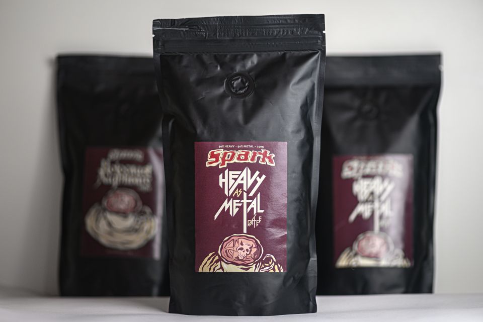 Heavy as Metal Směs Heavy as Metal je speciálně upražená pro rockový magazín Spark. Její podmanivá chuť evokuje tklivé, ale drsné metalové balady. Bohatýrská pěna podtrhuje mohutnost a pompéznost prožité chvíle s kávou. Citlivé doteky čokolády pak završí precizní chuťový zážitek.