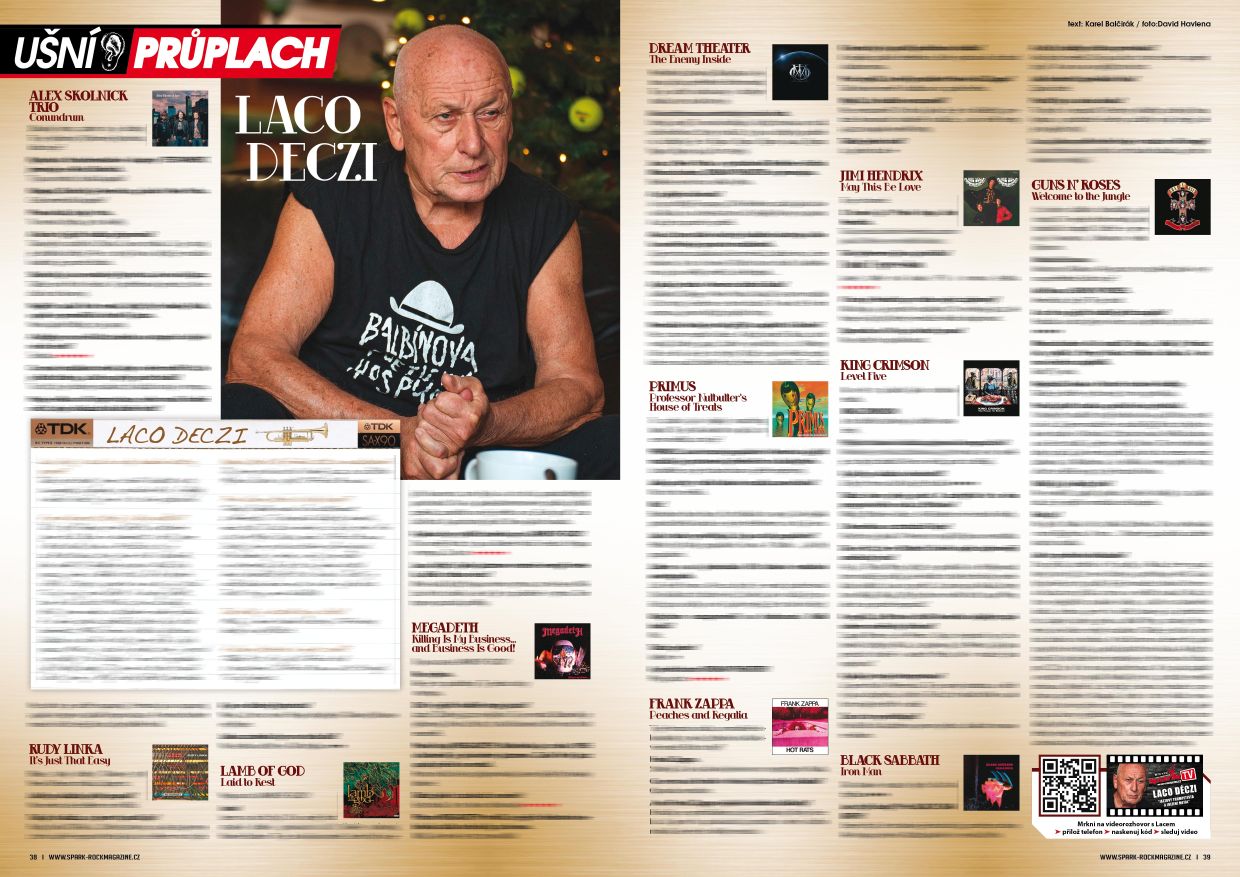 V lednovém čísle tohoto roku jsme Laca vyzpovídali v rubrice Ušní průplach a pustili mu rockové a metalové interprety, kterým měl velmi svojské komentáře. Zavilé Zappisty jistě potěší, že by si Franka Zappu pustil jako soundtrack k polské detektivce, ve které vyrabovali obchod s koberci.