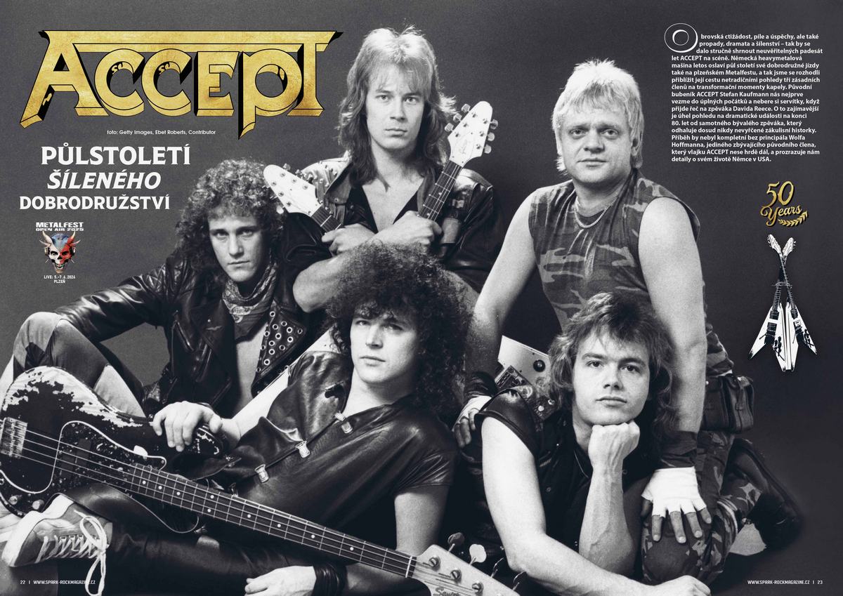 Obrovská ctižádost, píle a úspěchy, ale také propady, dramata a šílenství – tak by se dalo stručně shrnout neuvěřitelných padesát let ACCEPT na scéně. Německá heavymetalová mašina letos oslaví půl století své dobrodružné jízdy také na plzeňském Metalfestu, a tak jsme se v lednovém čísle rozhodli přiblížit její cestu netradičními pohledy tří zásadních členů na transformační momenty kapely.