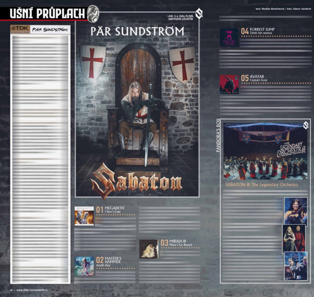 Ušní průplach je pravidelná sparkovská rubrika, v níž muzikanti nejen hodnotí produkci jiných, ale jako fanoušci taky představují svou hudební sbírku a vzpomínají na své hudební začátky. Takto se za nimi v lednovém čísle ohlédl baskytarista SABATON Pär Sundström: