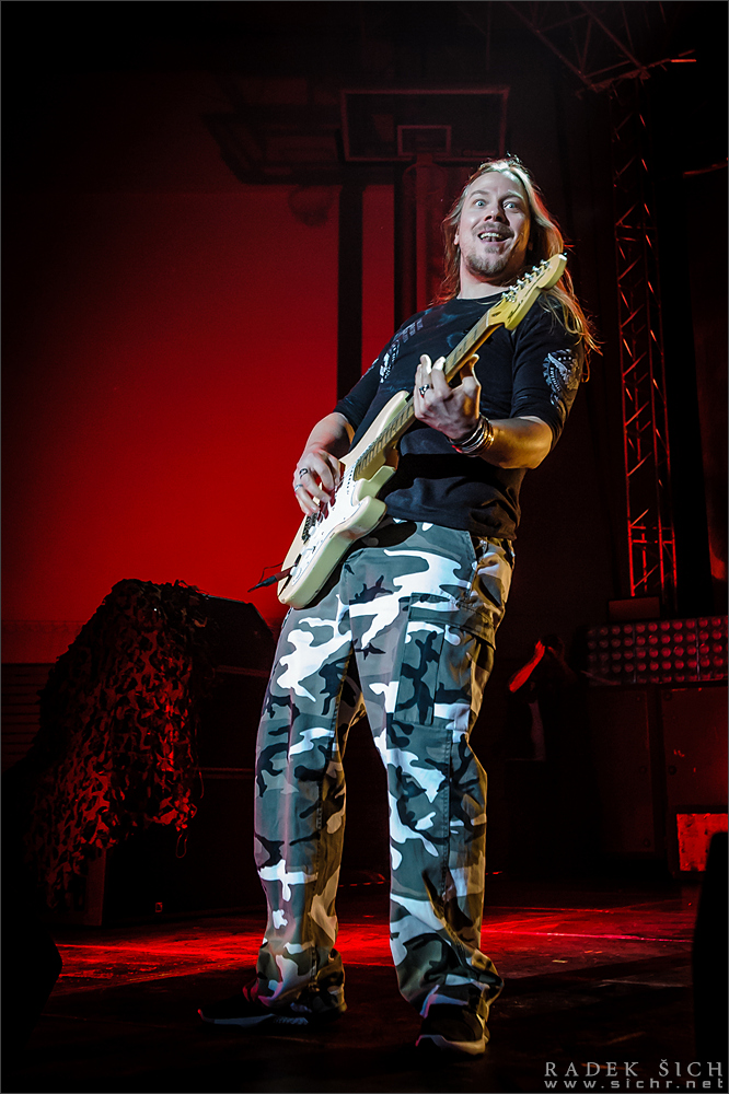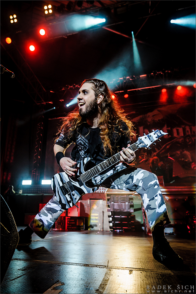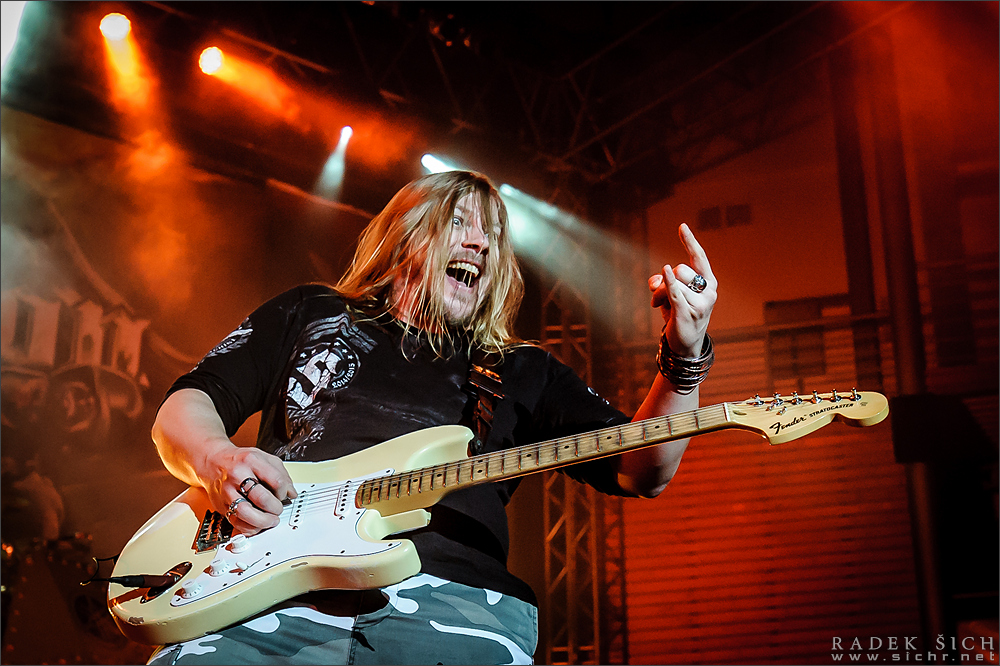 I v Brně je možné zajít na výborný metal, což fanoušci potvrdili vyprodáním sportovní haly ve Vodové. Nevím kolik publika chodí na zdejší basketbalové zápasy, ale bylo patrné, že masa lidí pořadatele zaskočila a organizace zpočátku zatraceně vázla. Přišel jsem na koncert půl hodiny před začátkem a fronta, která čekala na odbavení, sahala skoro k obzoru. Mnozí tak přišli o půl setu předkapely. Pořadatelé se snažili pobavit návštěvníky i během koncertu – u jednoho vchodu odmítli pouštět ven z haly na dvůr s jídlem a pivem (prý až o přestávce), zatímco u druhého proudily tam a sem celé davy. Jinde zase odmítli vypouštět kuřáky a ti marně a smutně koukali na popelníky přes sklo dveří. Ale k hudbě – večer startovali maďarští power - melodici WISDOM. Chvíli jsem bádal, proč mi přijdou tak zoufale průměrní – a hned jsem na to přišel: měli velmi ochuzený zvuk. Hodně tichá zvuková koule se valila z repráků a trčel z ní jen výborný ječák Gábora Nagye. Devět písní, které kapela prezentovala, bylo i přesto příjemně strávenou půlhodinkou. Hlavní hvězdy večera uvedla již tradičně stará dobrá odrhovačka EUROPE „The Final Countdown“ a pak už se rozpoutala bitevní vřava. V téměř dvou desítkách skladeb SABATON ukázali, proč je jejich vystoupení tak neodolatelnou podívanou: plné nasazení, chytlavé skladby, promyšlená vizuální prezentace a vždy zábavné žertování s publikem. Ano, buďte bez obav – i na „ještě jedno pivo“ došlo. Popisovat setlist je zbytečné, byly v něm stále hity a věci, které tak často neslyšíme („Midway“). Narvaná hala nadšeně aplaudovala každému songu a ze vzájemné interakce s kapelou až mrazilo. Myslím, že už jsem já (nebo někdo jiný) kdysi psal, že my „svému“ Brodénovi rozumíme. A já to klidně napíšu znova, protože Brněnský koncert tuhle pravdu potvrdil.