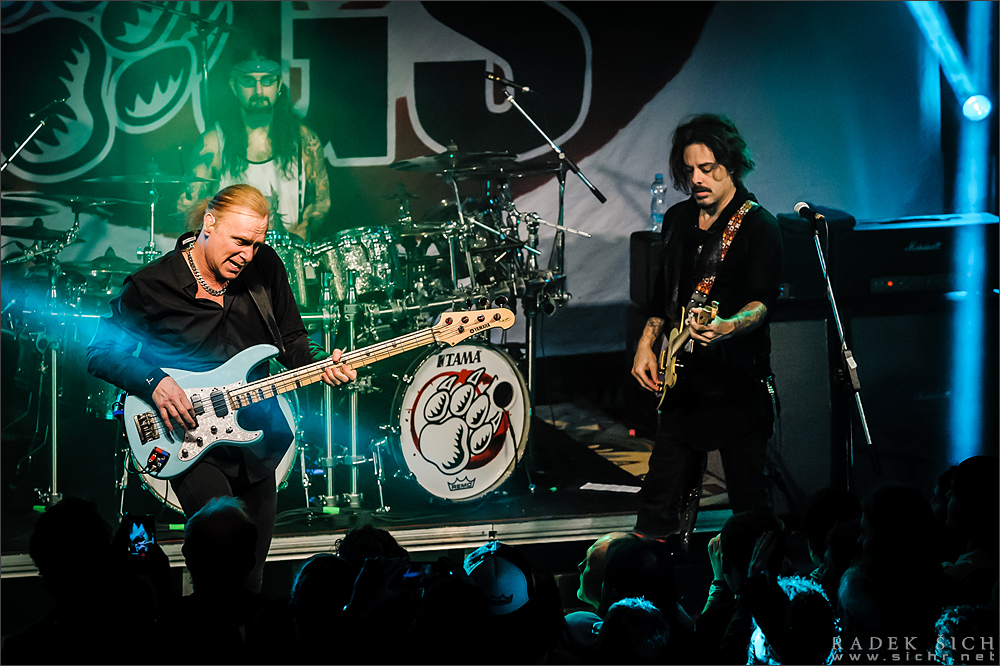 THE WINERY DOGS jsou jako přírodní úkaz srovnatelný s lavinou či tornádem. Tři výrazné osobnosti, technicky brilantní, které dohromady tvoří semknutou jednotku nebývalé síly. Jejich hard rock s bluesovým podtextem a prog rockovými pasážemi je nejenom technicky brilantní, ale současně i nabitý emocemi a vášnivou energií. Je skutečným požitkem sledovat bubeníka Mike Porntoye, s jakou lehkostí a samozřejmostí ovládá svou bicí soupravu. V pohodě by u toho mohl posvačit a ani jednou přitom nevypadnout z rytmu. Basák Billy Sheehan je největším srdcařem, který každou notu prožívá naplno, a jeho zaujetí pro hru i technická zdatnost je naprosto mimořádná. Kytarista a zpěvák Ritchie Kotzen v současnosti patří k nejlepším blues rockovým interpretům, ale v THE WINERY DOGS má trochu jinou úlohu. Hraje mnohem techničtěji než třeba na svých sólových deskách, ale zvládá to v pohodě a je svým dvěma kolegům rovnocenným partnerem. Kapela nám naservírovala to nejlepší ze dvou studiových desek a zhruba v polovině to proložila sólovými party, ale nijak to s tím exhibováním naštěstí nepřeháněli, takže koncert měl pořád spád i gradaci. THE WINERY DOGS předvedli v Olomouci svou extra třídu a jejich strhující vystoupení v nás bude rezonovat ještě hodně dlouho, stejně jako naprosto zpackaná organizace.