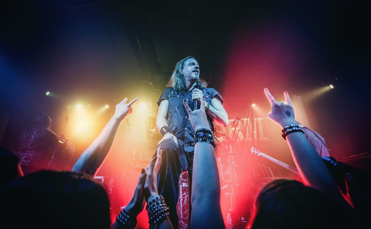 Zaplněnou Chmelnicí se jako první prohnali metaloví benjamínci (byť už válí devátou sezónu) z Edmontonu STRIKER. Klukům nechybí drzost a ani nadšení. Čerpají z tradičních kořenů NWOBHM a těch se i pevně drží. Žádné experiment ale naopak silné refrény a ječák frontmana Danyho Clearyho. Do zhruba půlhodinového setu narvali, co se dalo a pokud jim entuziazmus vydrží, nic by nemělo bránit, aby se stali nastupující heavy metalovou generací. Kromě frontmana poklonu zaslouží i vysmátý bubeník Adam Brown, který svými škleby neustále bavil děvčata v první řadě. Osmdesátkový outfit s teniskami evidentně ještě neřekl poslední slovo. BRAINSTROM stejně jako PRIMAL FEAR přivezli do Prahy albovou novinku. Pojmenovali jí „Scary Creatures“ a vybrali z ní, tuším, tři věci. Novinkovou „The World to See“ svůj set aktuálně zahajují. Kapela se stále drží vysokého standardu, přičemž jasným lídrem je vykutálený zpěvák Andy B. Franck. Lehké nachlazení na sobě nedal znát a spíše ho více trápila teplota v sále, která způsobila, že Andy byl na konci vystoupení promáčený až na kost. Bral to s nadhledem, ostatně jako celý koncert. Novinka naživo šlape možná ještě lépe než na desce a z takové „How Much Can You Take“ se zřejmě vyloupne další velký hit BRAINSTORM. Naprosto famózní výkony ale podává bubeník Dieter Bernert. Jeho přesná a nekompromisní hra snese srovnání těch nejvyšších měřítek. Nová placka PRIMAL FEAR „Rulebreaker“ patří k top počinům, co Sinnerova družina dokázala za téměř dvacet let vyplodit. Mimochodem atakovala i české prodejní žebříčky a dostala se až na slušné patnácté místo. Z novinky se citovalo ten večer hned pětkrát. Nechyběla například novodobá heavy metalová hymna „In Metal We Trust“ nebo titulní hitová „Rulebreaker“. Zařazení pomalé „The Sky Is Burning“ pak bylo nesmělou ukázkou, že kapela nemusí za každou cenu hrnout dvoušlapky a power metalové riffy. Zpěvák Ralf Scheepers má formu. Nejen tu tělesnou, ale zejména hlasovou. Jeho sympatická svědomitost mu nedovolí, aby byť jediný tón ošidil. Skvěle zapadl i bicman Francesco Jovino. PRIMAL FEAR jsou aktuálně na špici a když jsme před koncertem s Ralfem prohodili pár, vzpomněli jsme i na GAMMA RAY (video rozhovor níže). A musím uznat, že Hansenovci jsou v současnosti až ti druzí.