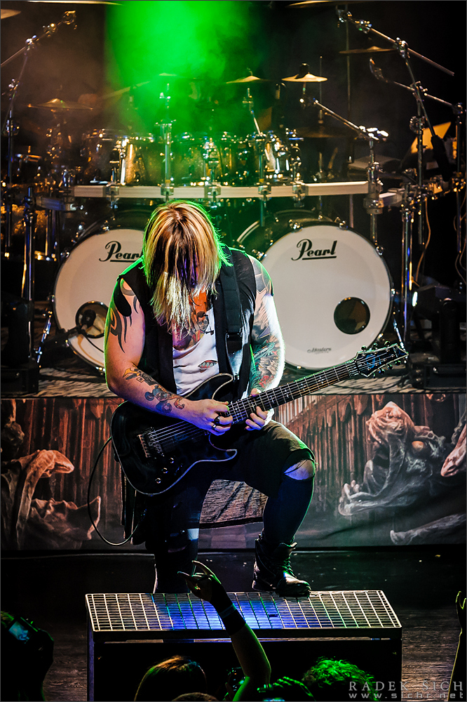 Menší akce schovaná mezi dvěma zimními zlínskými metalovými vrcholy. Každopádně po hudební stránce se trojice JADED STAR, XANDRIA a především SERENITY kapelám jako POWERWOLF, BATTLEBEAST ale i HELLOWEEN zcela vyrovná a na popularitě prvně jmenovaných se rovněž pilně pracuje. JADED STAR mě zaujali už na zimním MORu před třemi měsíci, především tedy tím, jak šikovně nenaplňují klišé symfonického metalu se zpěvačkou v čele. Může za to nejen Maxi Nil, která zpívá přirozeně, rockově a bylo vidět, jak se i za ten krátký čas stále lépe zabydluje v čele JADED STAR, ale i technicky naprosto úžasný kytarista Kosta Vreto, jehož nástroj vydá za menší spolek symfoniků. Jeho mezi metalisty netradiční práce pravou rukou, kdy brnká opravdu všemi prsty, umožňuje rozezvučit všechny struny na hmatníku. Takto hraje kupříkladu Alan Morse ze SPOCK´S BEARD, pokud byste chtěli nějaké srovnání. Když do XANDRIE přišla v roce 2013 Dianne van Giersbergen, očekával jsem, že se tvorba kapely poněkud posune mimo břehy raných NIGHTWISH. Opak je však pravdou, Němci s půvabnou Holanďankou v čele přidali naopak ještě více bombastiky, patosu a na koncertě logicky i samplů. Podle mě je však škoda, že ve spoustě skladeb tak burácí předtočený orchestr, když by zcela jistě mohli více rachotit oba kytaristé, kteří jsou velmi zruční, než aby museli povětšinou drhnout jen základní akordy. I Dianne má daleko širší hlasový rejstřík a jiné polohy než jen ta operní – sopránová by mi osobně bodly. Ale kolik děr tolik syslů, kolik hlav tolik smyslů, někomu vyhovuje XANDRIA a budiž mu přáno, mi naopak poslední měsíce imponují SERENITY, protože konečně zase někdo po čase nacpal do symfonické ohrádky i nějaká ta power metalová psiska. Takhle si představuji bombastický power metal. Nedávná posila v osobě kytaristy říkajícího si Cris Tian se naprosto osvědčila. I když i SERENITY používají samply, tento potetovaný týpek v roztrhaných svršcích připomínající spíše postavičku z nějakého non-stopu umí pořád zariffovat, zasólovat, používá i španělku a zásobuje tak celou kapelu komplexním (a luxusním) kytarovým zbožím. Georgu Neuhauserovi to zpívá i komunikuje, jak se na správného frontmana sluší a patří, a co je asi na současných SERENITY naprosto nejúžasnější, jsou veškeré vícehlasy a sbory. V některých okamžicích zpívají totiž všichni čtyři stálí členové současné sestavy a na tomto turné se k nim přidávala i půvabná ženská posila říkající si Tasha. Další důkaz, že v hudbě je třeba lidského elementu, který nelze žádným strojem nahradit (jeden úryvek si dala pětice a capella a to už šel mráz po zádech). SERENITY mají výtečnou novou desku „Codex Atlanticus“, živě hrají jako z partesu a před sebou mají mimo jiné i koncerty s KAMELOT. To by bylo, aby se tato sympatická kapela letos nevyšvihla do vedoucí skupiny symfonického power metalu.