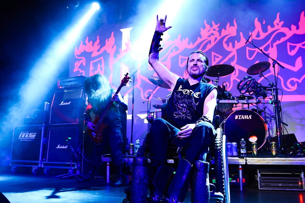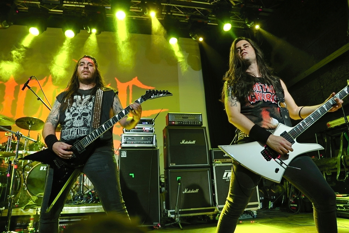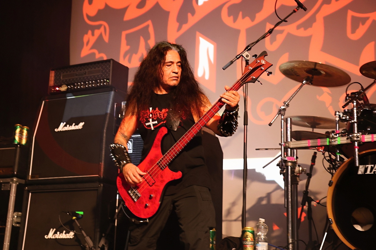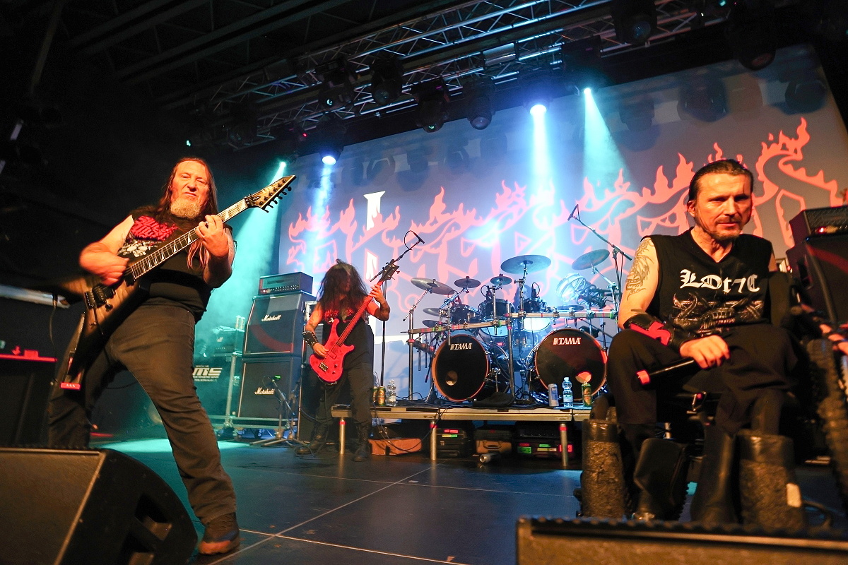 Vše se pak už nachystalo pro hlavní hvězdu, samotné praotce death metalu, nesmrtelné POSSESSED. U tohoto zásadního ansámblu snad ani není co říct. Jediný původní člen Jeff Becerra se svým spolkem přinesl opět smrtící smršť, která psala dějiny extrémní hudby. K potěše všech přítomných kapela přehrála celé debutové album „Seven Churches“, od kterého uplynulo neuvěřitelných čtyřicet let. Kromě toho nechybělo i pár štychů z dalších alb, jako neopakovatelná „Tribulation“, „Seance“ či „Demon“ s „Graven“. Závěrečná „Swing of the Axe“ dokonala zkázu. Kytarové duo Danny s Claudeousem předvedli naprosté kytarové inferno s podporou rytmického běsnění Chrise s paličkami a Robertem se čtyřmi lany. No a samotný Jeff? Neskutečně vitální v rámci možností, kdy si show neskutečně užíval. Samotný zvuk show trhal na malé kousky a byl více než kvitován početným publikem. Formace šlapala jako dokonale promazaný stroj. Aby toho nebylo málo, již zmiňovaná malá fanynka Verča od Jeffa obdržela jeho návlek na ruku. POSSESSED jsou neskutečným pojmem, stálicí a šperkem na piedestalu extrémního metalu.