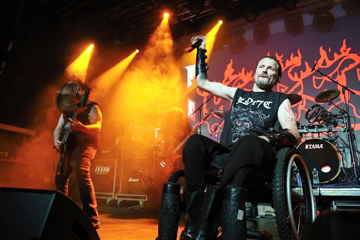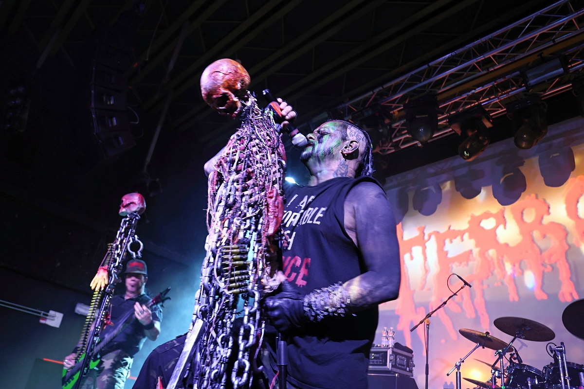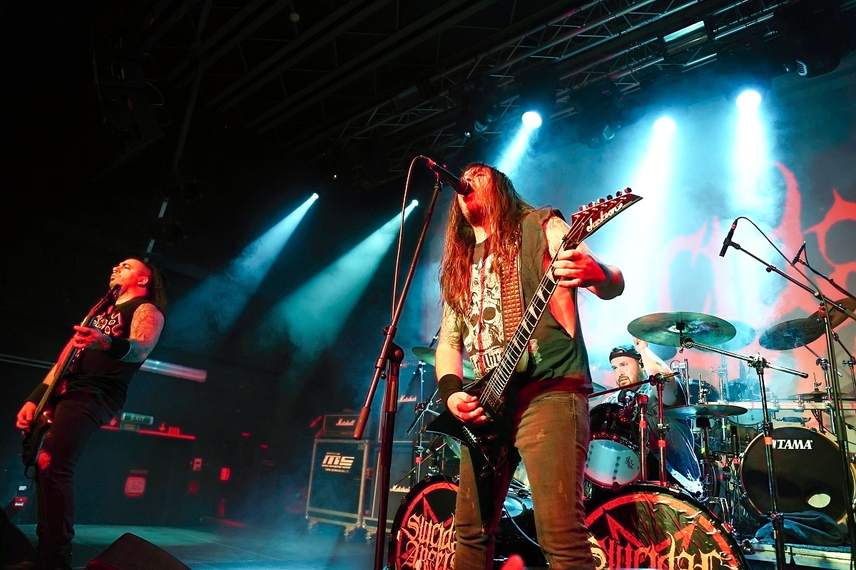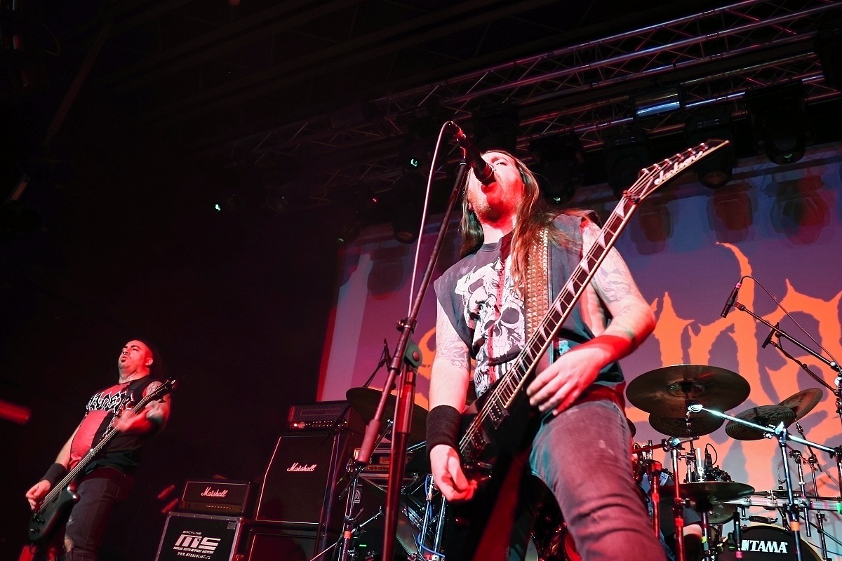 To třetí borci jsou už jasně zavedení na extrémní scéně. Řečtí thrashmetaloví matadoři SUICIDAL ANGELS rozjeli naprosto agresivní show s nadupanými riffy, kdy neponechali nic náhodě. Ale to už všechno směřovalo k prvním hvězdám, kterými nebyl nikdo jiný než slovutní králové extrémního death grindu – TERRORIZER. Sestava byla více než skvostná. Nelehkého vokálního partu se ujal Brian Werner, zatímco šest strun neskutečně zběsile drhnul Richie Brown. Oba se k legendě přidali v roce 2023. Když už mluvím o legendách, za bicí artilerií nemohl sedět nikdo jiný než naprostý šílenec Paul „Commandante“ Sandoval a čtyři struny nemohl znásilňovat nikdo jiný než David Vincent. K tomu se ani nedá nic říct. TERRORIZER se s ničím nepárali a nabušili do fanoušků celé zásadní debutové album „World Downfall“. Je zajímavostí, že když poprvé začalo demolovat svět v roce 1989, Brianovi bylo devět let. Dokonale extrémní, brutální show si užíval každý a někdo i určitě více, kdy si právě Brian na pódium vytáhnul jedenáctiletou Verču, aby se s ní posléze vrhnul do davu. Kapela jela neskutečně na plný plyn a celou show dokreslovalo promítání hodně povedeně zpracovaných nihilistických a drásajících podkresů. Album „World Downfall“ je naprostou klasikou, kterou doplnili i pár skladbami z pozdějších alb, jako třeba „Crematorium“, „Nightmare“, „Hordes of Zombies“ či „State of Mind“. Hodina naprostého masakru a šílenství utekla neskutečně rychle. TERRORIZER jsou absolutní legendou svého druhu.