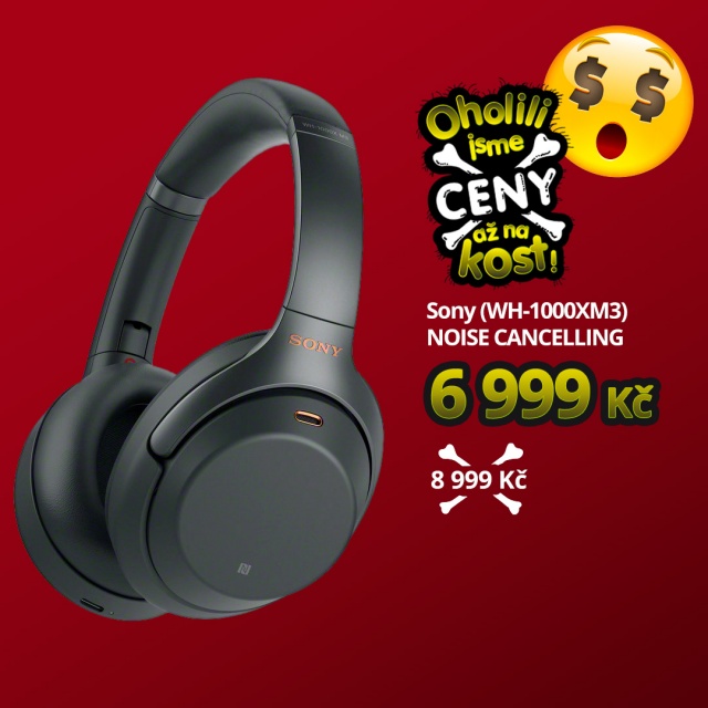 Sluchátka Sony (WH-1000XM3) koupíte za 6 999 Kč (běžná cena je 8 999 Kč).