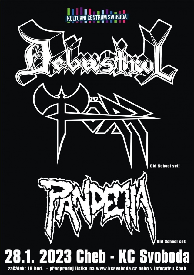 Po dlouhé odmlce se na pódium vrací chebská death metalová kapela Pandemia se skvělými hosty, legendami metalové scény Debustrol a Törr. 28. ledna v domovském Chebu v KC Svoboda.