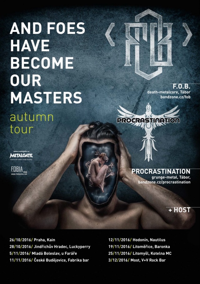 Šesté řadové album F.O.B., které je zároveň třetím kouskem, jenž kapele vyšlo u METALGATE labelu, nese název „…and the foes have become our masters“. Obsahuje deset lyrických balad v typickém F.O.B. stylu, včetně skladby „Debts of Imperfection“, kterou kapela vypustila do světa jako svůj videoklip. Na ploše alba vás čeká hudební smršť typická pro F.O.B., jenž kombinuje výrazné kytarové riffy, strojové tempo bicích, melodické vyhrávky a Márův nezaměnitelný zpěv, který opět výrazově alternuje mezi growlem a čistým vokálem. Z hudebního hlediska je tu nicméně jedna podstatná novinka v tom smyslu, že oproti minulým deskám zde dostávají daleko větší prostor death metalové postupy a kompozice, čímž F.O.B. rozehrávají určitý návrat ke kořenům a dávají tak vzpomenout na svoji ranější tvorbu z dob „Follow The Instructions“ a „Default“. Fanoušci pozdější tvorby F.O.B. si ale rozhodně nemusejí zoufat, jelikož moderní metalové vlivy, které jsou součástí kapelního repertoáru od dob „The Dice“, zůstaly i nadále zachovány. Právě nejvíc z této desky bude koncertní set připraven. Ovšem kdo byl na F.O.B. naživo někdy v poslední době nemusí zoufat. Na řadu totiž přijdou songy, které naživo ještě nezazněly, navíc k tomu i pár překvapení a také samozřejmě i zástupci starších desek.