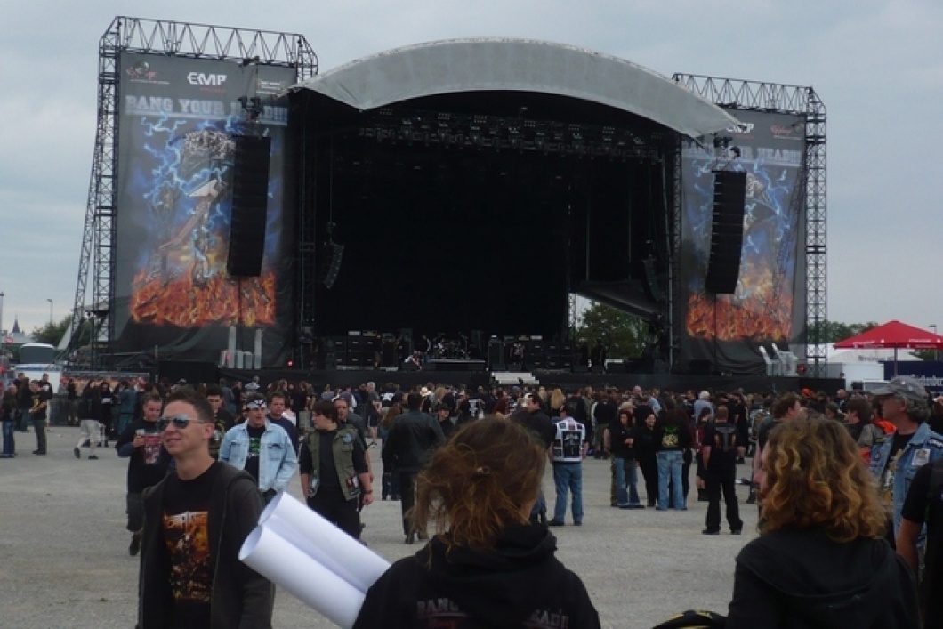 PRETTY MAIDS mě ještě nezklamali, tahle kapela rozdává radost a přitom je úplně jedno, do které své desky hrábne. Z haly jsem tedy vyšel (jak by řekli místní) durch a SLAYER jsem chtěl původně jenom tak omrknout, protože pařit ještě čtvrtý koncert za sebou – to jsem si nedovedl představit. Jenže sotva jsem se propletl davem, zamířili Američané až na „jih nebe“ a opět jsem naplňoval název festivalu – Bang Your Head. Posléze jsem si uvědomil, že vlastně naprosto proti přirozenému běhu festivalu a únavy jsem díky sobotním kapelám čím dál svěžejší, takže by mi tentokrát nevadil ani další hrací den. To však jen tak na okraj, zpět ke SLAYER. Už jen majestátní jednoduchá ale působivá scéna musela uhranout a což teprve špičkový výkon celé čtveřice. Na druhé kytaře stále s Gary Holtem podali SLAYER výkon hodný mistrů škatulky i celého metalového hnutí. Výborný zvuk, uštěkaný Araya jako zamlada (teď, když nemůže házet hlavou, vypadá ve strnulé poloze ještě více hrozivě) a naprosto famózní duo King – Holt. Sóla se míhala jako dva zmijí jazýčky, řekl bych, že si Jeff Hanneman může ještě klidně o pár měsíců prodloužit rekonvalescenci. Dave Lombarda nemá cenu komentovat, jeho thrashový „swing“, kdy je vidět, že paličky mu v rukách jenom kmitají bez větší námahy, vytváří odrazovou rytmickou trampolínu pro celý SLAYER. Řekl bych, že tahle kapela ještě bude dlouho vyučovat, jak se strouhá pořádný thrashing. Pro mě to byl naprosto špičkový závěr festivalu, finálová mistrovská tečka, po níž už nemohlo nic dalšího následovat. A tak jsem oželel i finské příšerky LORDI, kteří celou akci v hale uzavřeli. Jak jsem se dověděl doma, jedinou kaňkou na letošním BANG YOUR HEAD!!! bylo vážné zranění jednoho fanouška, ke kterému došlo z pátku na sobotu. Podle poslední zprávy se mu však začalo dařit lépe a měl by se z toho dostat. Nechci v tomto okamžiku tvrdit, že za rok ve stejnou dobu na stejném místě. Stát se může všelicos. Řeknu jen, že pocit, když se člověk ráno vyhrabe na balingenské louce ze spacáku a ví, že ho čekají kapely, které jen tak běžně nemůže vidět, je k nezaplacení. Takže asi tušíte, co se asi odehraje příští rok v jistém červencovém termínu.
