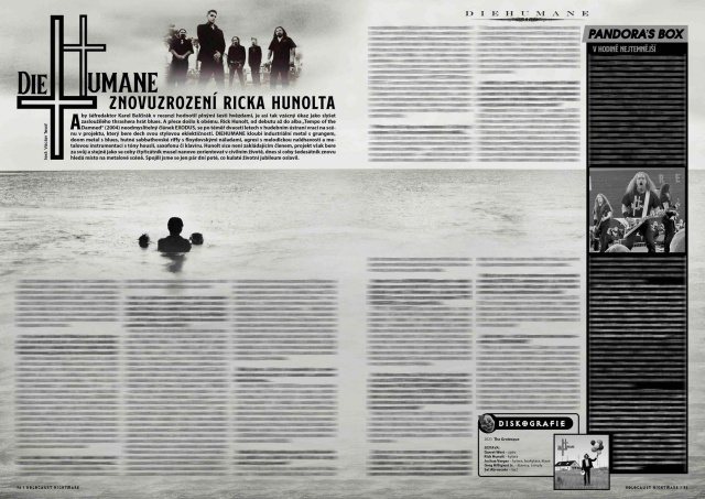 DIEHUMANE kloubí industriální metal s grungem, doom metal s blues, hutné sabbathovské riffy s floydovskými náladami, agresi s melodickou naléhavostí a metalovou instrumentaci s tóny houslí, saxofonu či klavíru. Hunolt sice není zakládajícím členem, projekt však bere za svůj a stejně jako se coby čtyřicátník musel nanovo zorientovat v civilním životě, dnes si coby šedesátník znovu hledá místo na metalové scéně. Spojili jsme se jen pár dní poté, co kulaté životní jubileum oslavil a výsledek rozhovoru můžete najít v aktuálním listopadovém Sparku.
