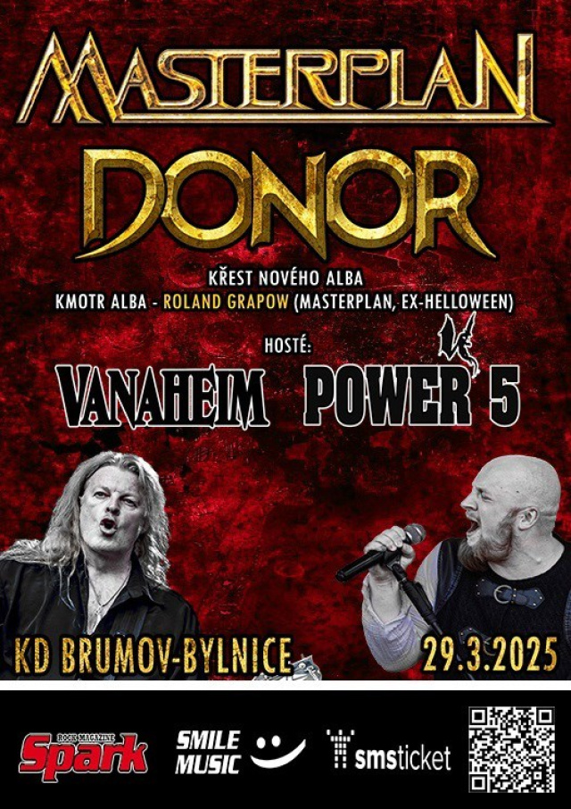 MASTERPLAN přivezou svou show 29. března do Kulturního domu Brumov-Bylnice. Vedle nich vystoupí také tuzemské kapely VANAHEIM, POWER 5 a DONOR. Přičemž DONOR toho dne pokřtí své zbrusu nové album „Jeviště snů“, ústřední postava MASTERPLAN Roland Grapow se chopí role kmotra desky a slavnostně ji pokřtí. A ne náhodou – celou desku DONOR mixovali v jeho studiu. Rozhodli jsme se hudební vztah Valachů DONOR a legendy Rolanda Grapowa prozkoumat v kratičkém rozhovoru.