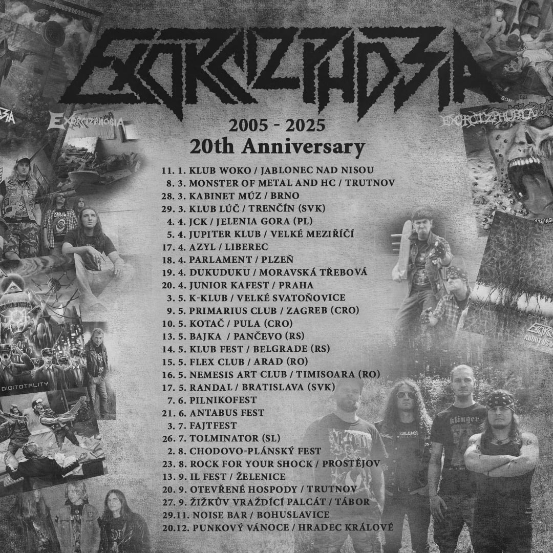 Trutnovská Exorcizphobia letos slaví dvacet let existence a při této příležitosti se chystá hned několik věcí, které rozhodně stojí za pozornost. První z nich je záznam vystoupení z festivalu Monster of Metal and Hardcore, který se právě objevil na Youtube. Akce se odehrála 8.3. v Trutnově ve vyprodaném Národním Domě, o záznam se postarala polská firma Corvideo. Držitelé loňské ceny Anděl v kategorii Rock předkládají hodinový set, který obsahuje převážně skladby ze dvou posledních dlouhohrajících desek „Digitotality“, „Spiritual Exodus“ a EP „Friend Of Lunacy“.
