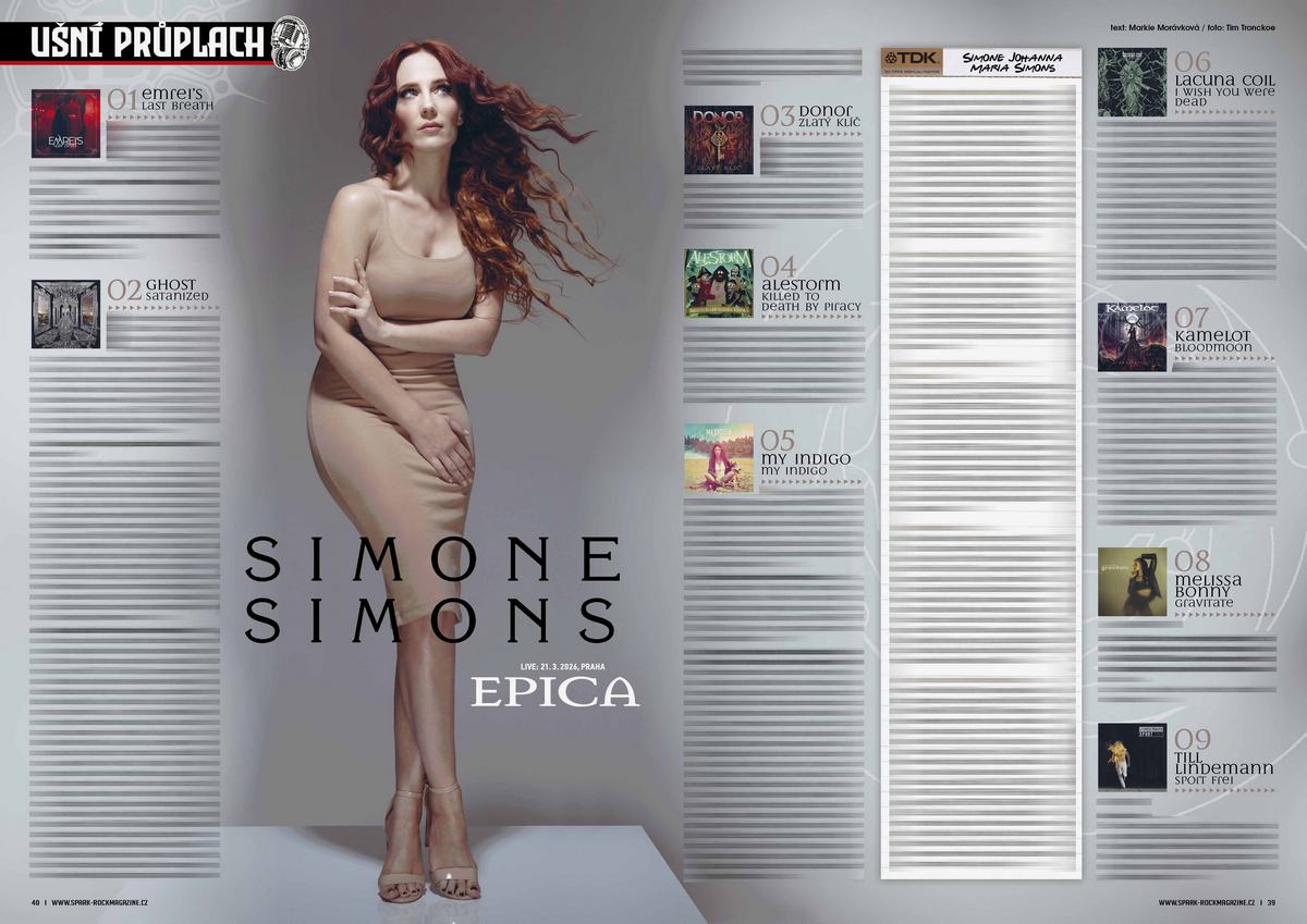 Začínala hrát na flétnu, chtěla zpívat v kapele jako jsou SPICE GIRLS a dnes jejím uším nejvíc ladí temnější metal. Co dalšího na sebe v Ušním průplachu v únorovém Sparku prozradila zpěvačky EPIKY Simone Simons?
