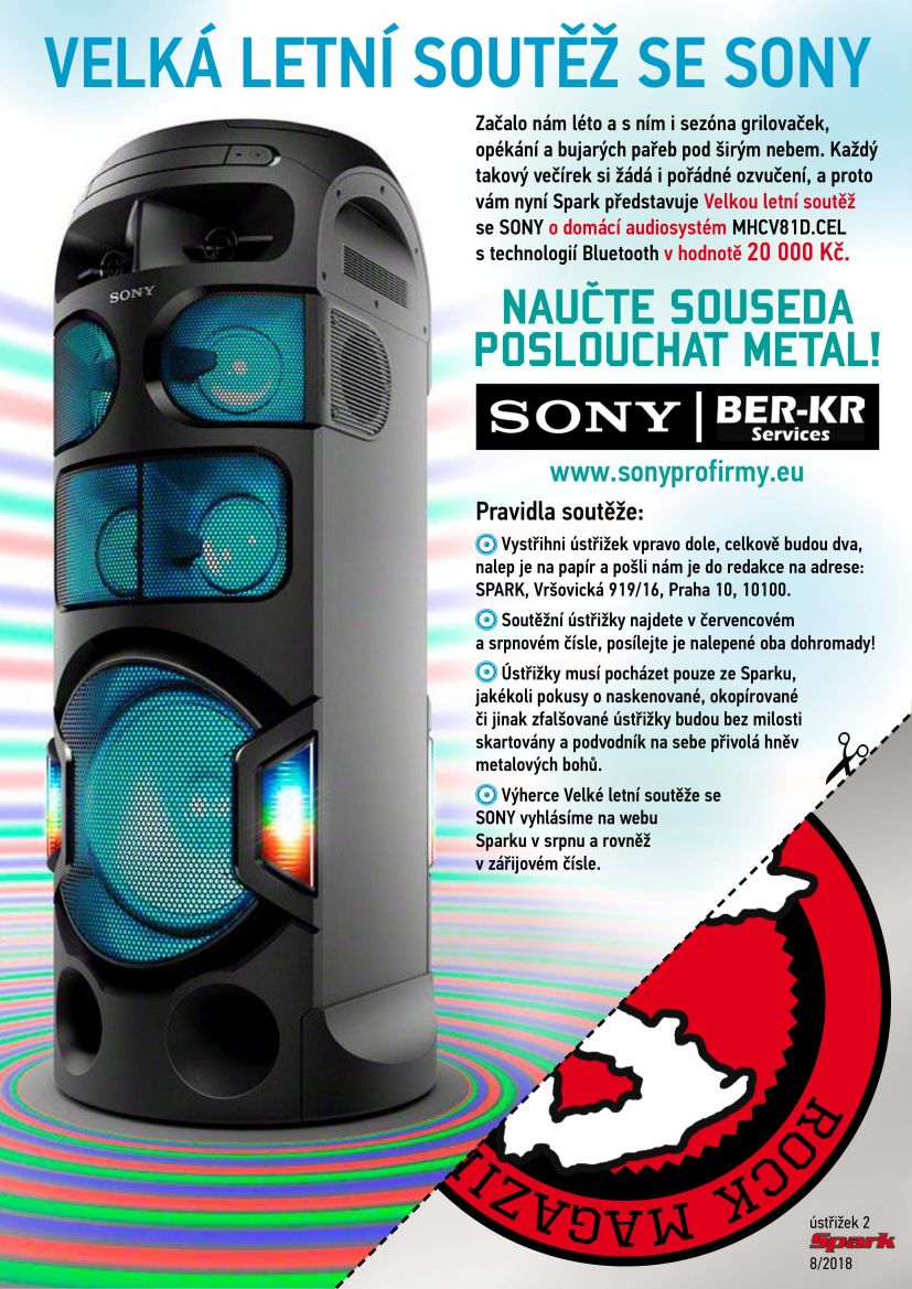 Velká letní soutěž se Sony se překlopila do své druhé části. V srpnovém Sparku najdete druhý soutěžní ústřižek o audiosystém v hodnotě 20 tisíc korun. Nůžky naostřit, lepidlo připravit!